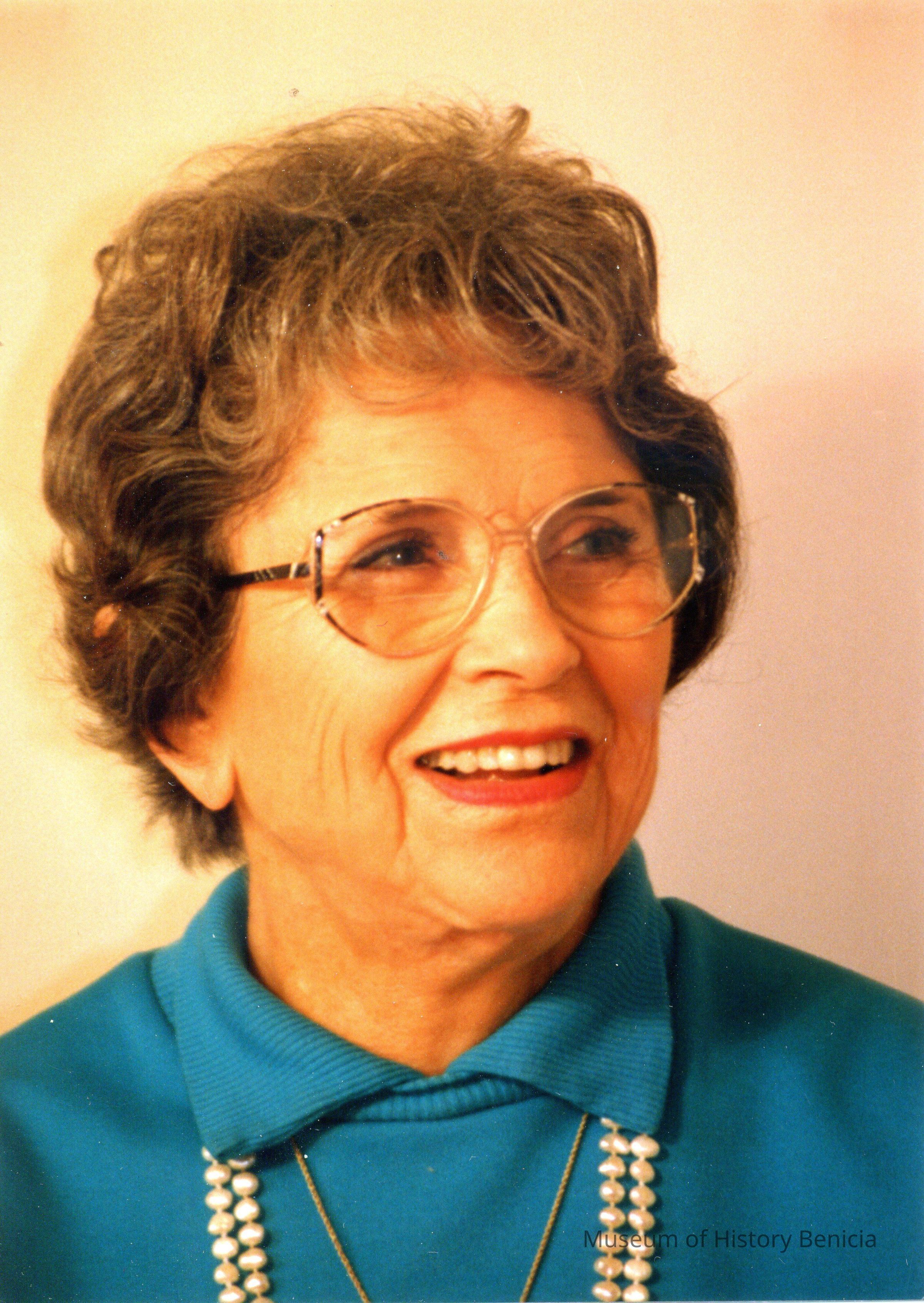 Color photo of Zelinda Lopes, former Camel Barn board member. Zelinda and her husband Joesph owned the Lopes dairy ranch northwest of Benicia. They had over 200 head of dairy cows. Zelinda also owned an antique shop on First St..Collection