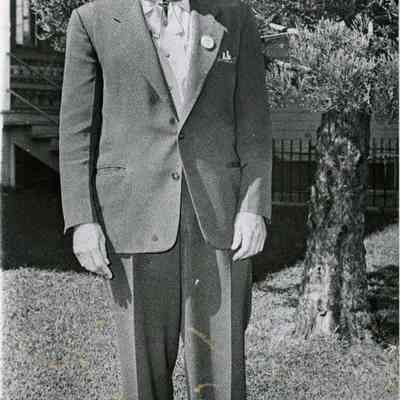 Mayor of Benicia Ed Koenig at a western days celebration. B/W photo.