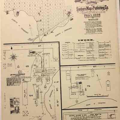 A black and white reproduction of a Benicia Sanborn Map from February 1886 republished in 1979 as ISBN 0-932732-06-2 "Benicia 1886 Map Folio"