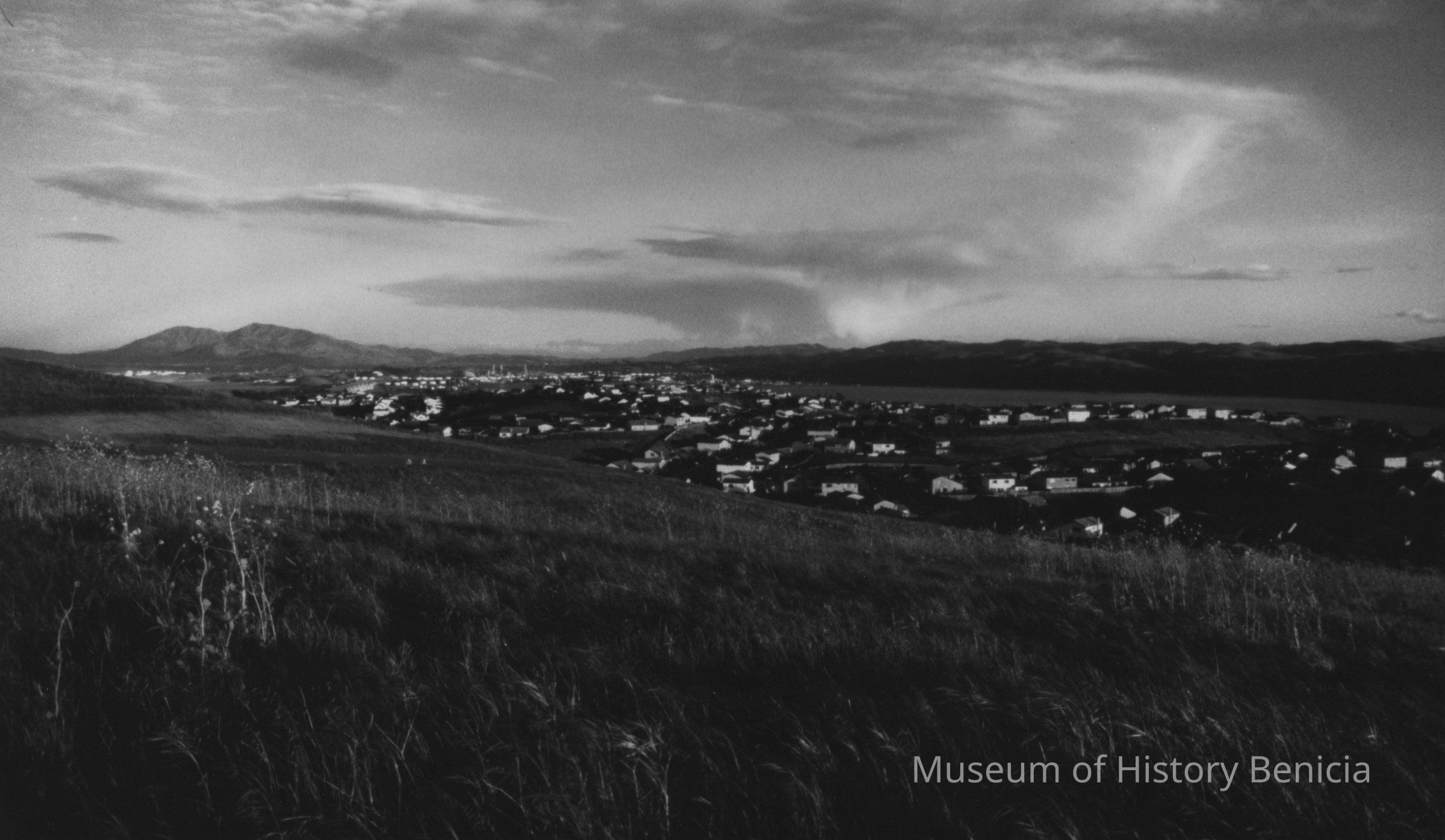 B/W photograph of Southampton development as seen from an adjacent empty hillside. Mt. Diablo is in the background at the left.
