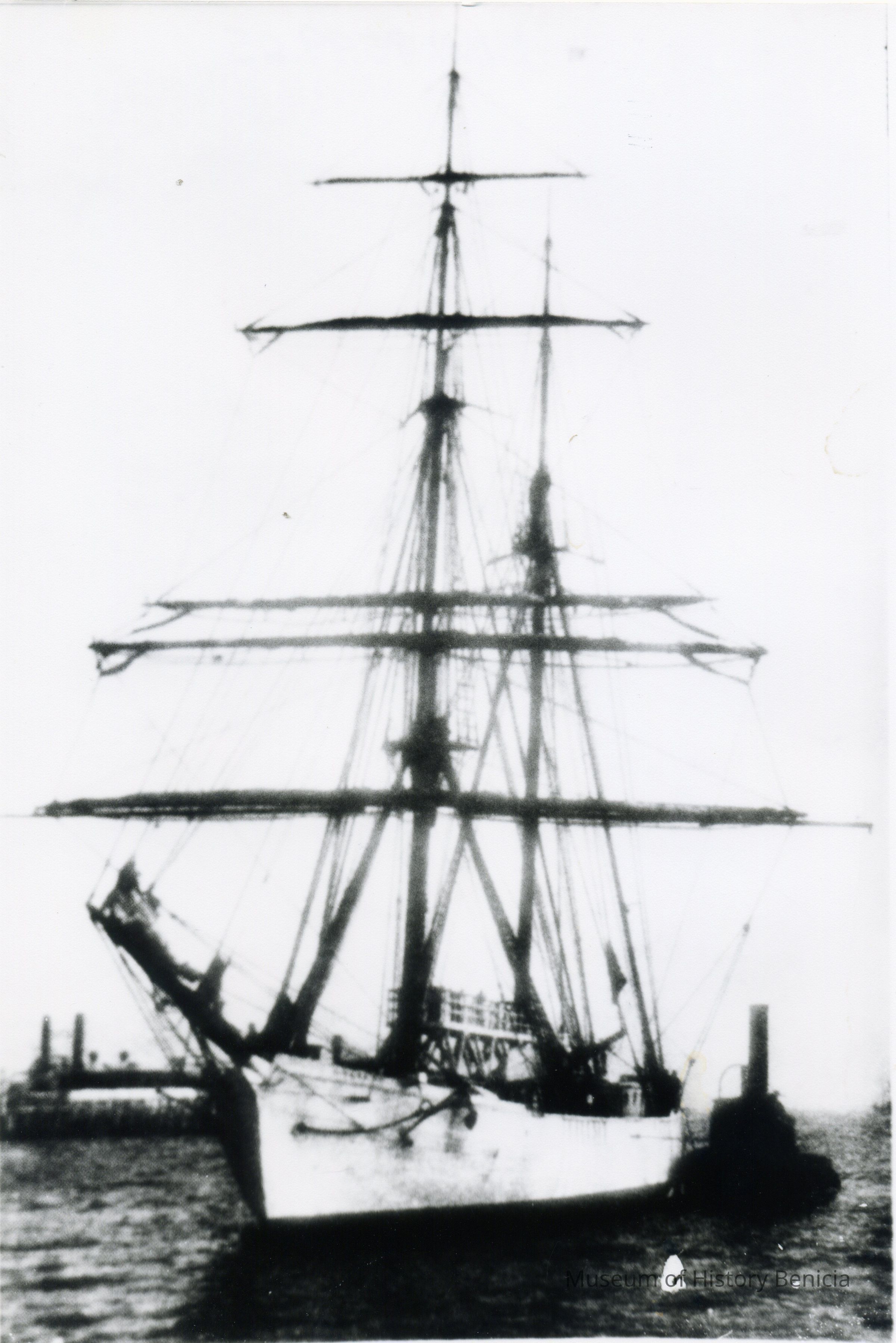 Copy of B/W photo of Matthew Turner's brigantine "Galilee," 180 ft. long, built at Turner Shipyard in Benicia, 1891. Remains of a section of the bow is at the museum.Collection