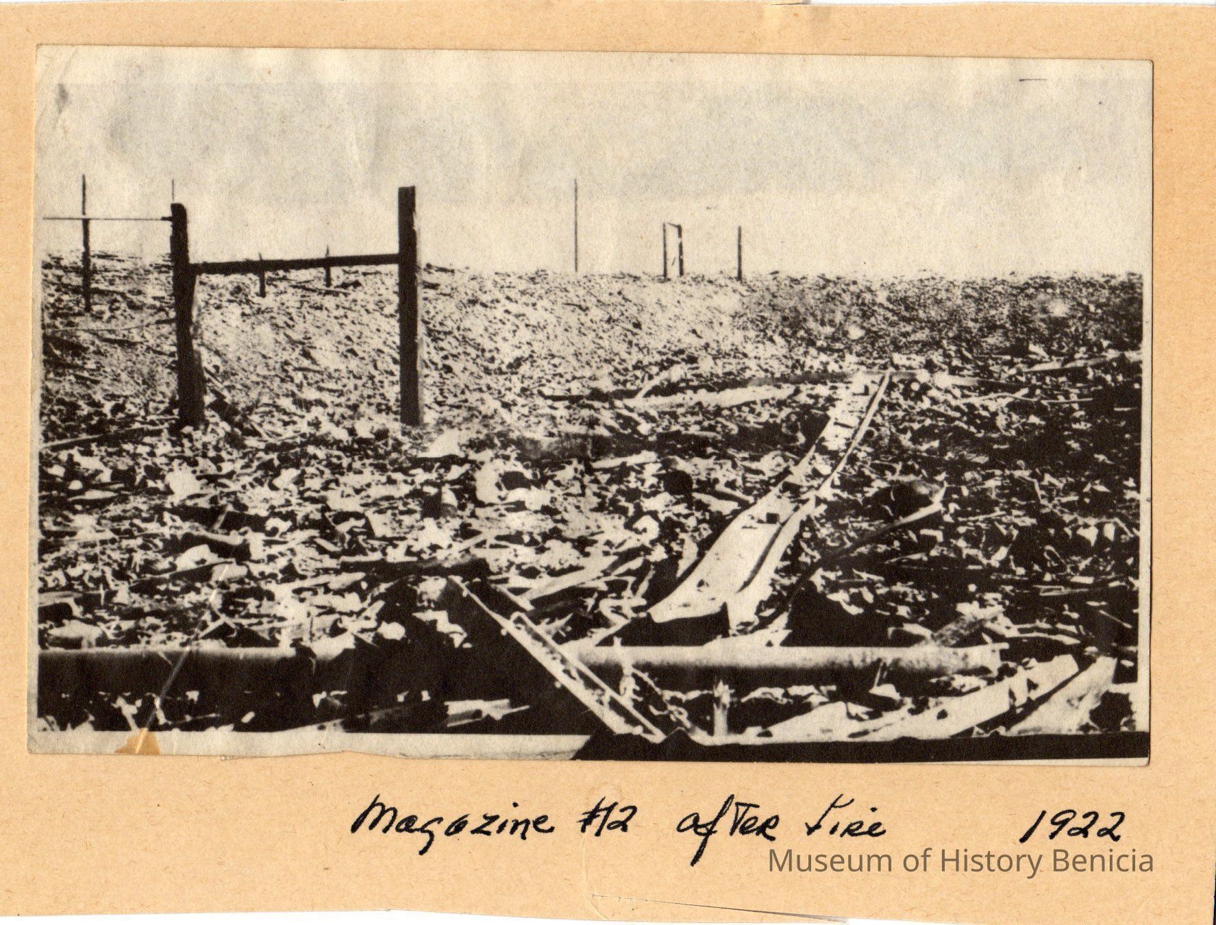 B/W Photograph: Benicia Arsenal Powder Magazine 11 debris after explosio in 1922.