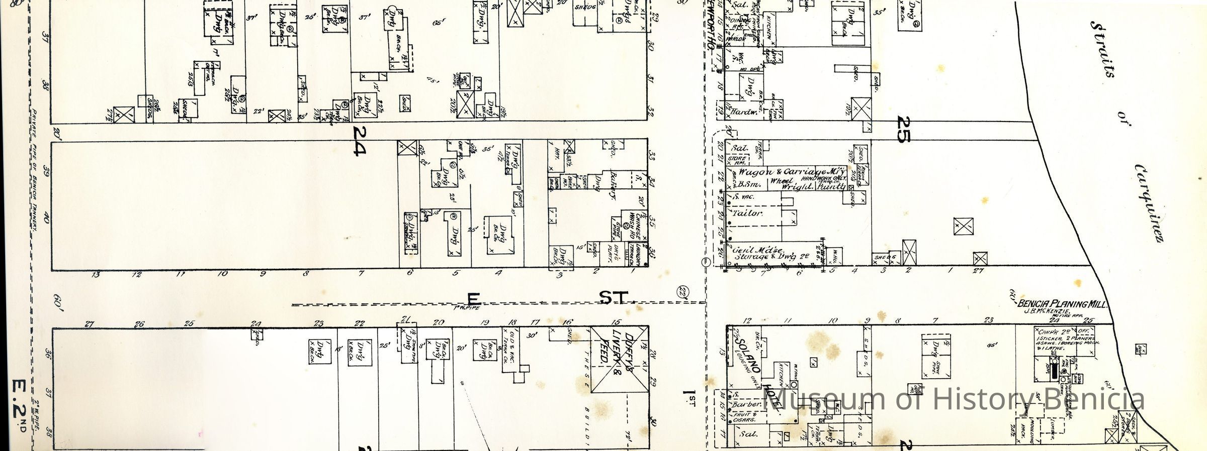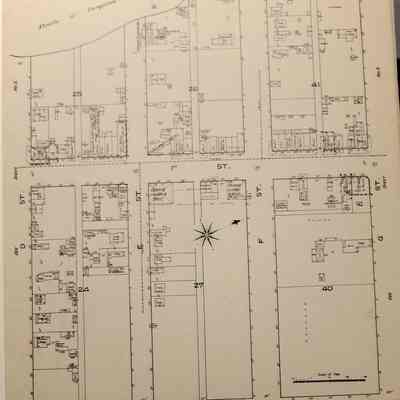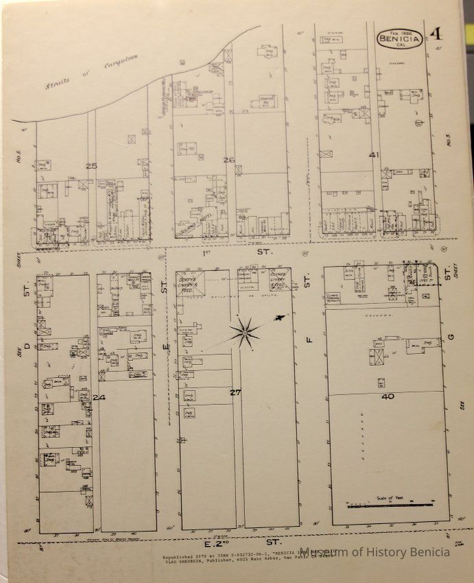 A black and white reproduction of a Benicia Sanborn Map from February 1886 republished in 1979 as ISBN 0-932732-06-2 "Benicia 1886 Map Folio"
