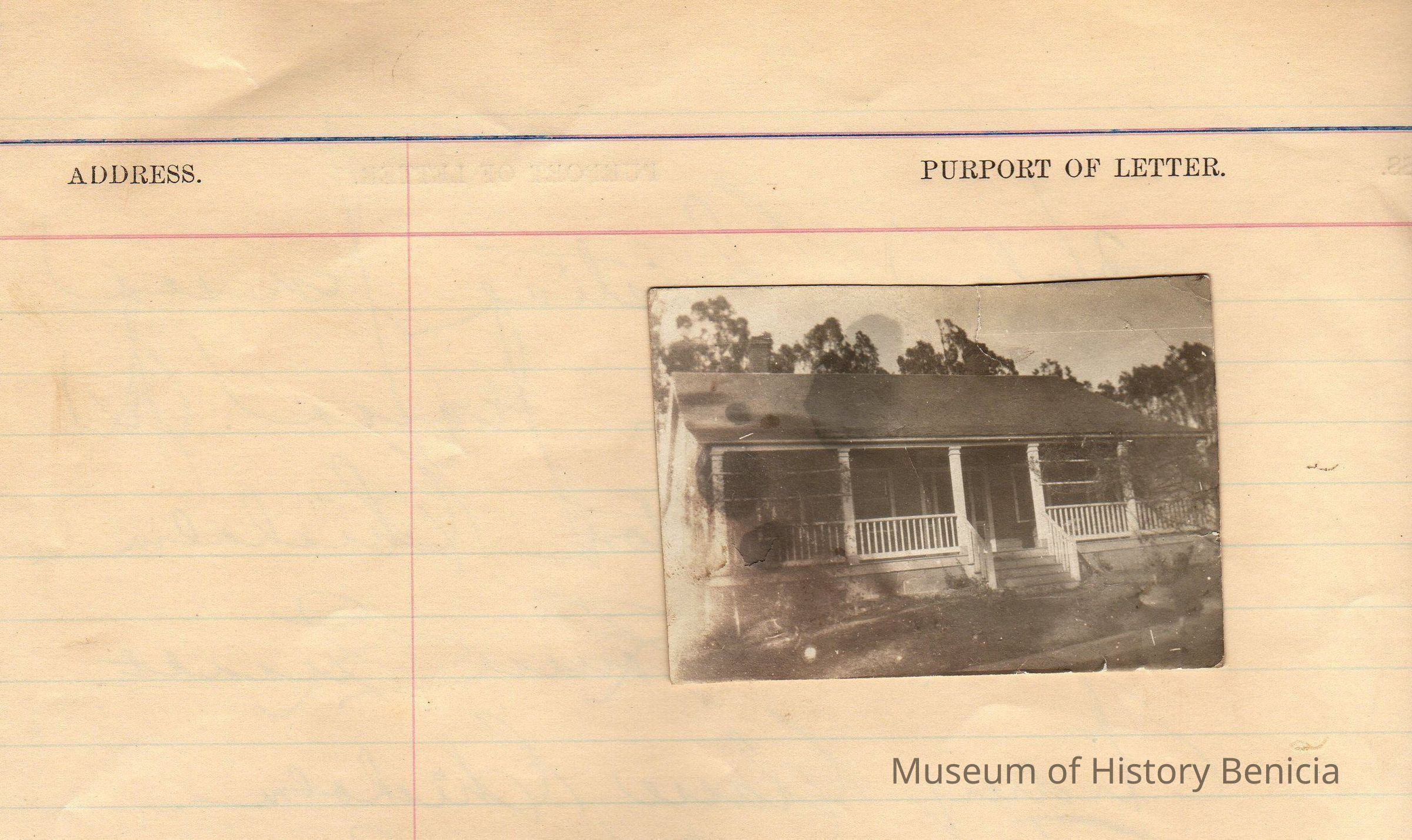 B/W photograph: shows a house on Jefferson Street, NCO quarters. Photograph is glued to a piece of lined ledger paper with the following names written in ink on back: Helen Christine Jensen, Arthur Peter Jensen, Robert Johnson Chisholm, Madeleine Louise Quandt, Audrey Claire Chisholm, and part of another name that has been torn off.Collection