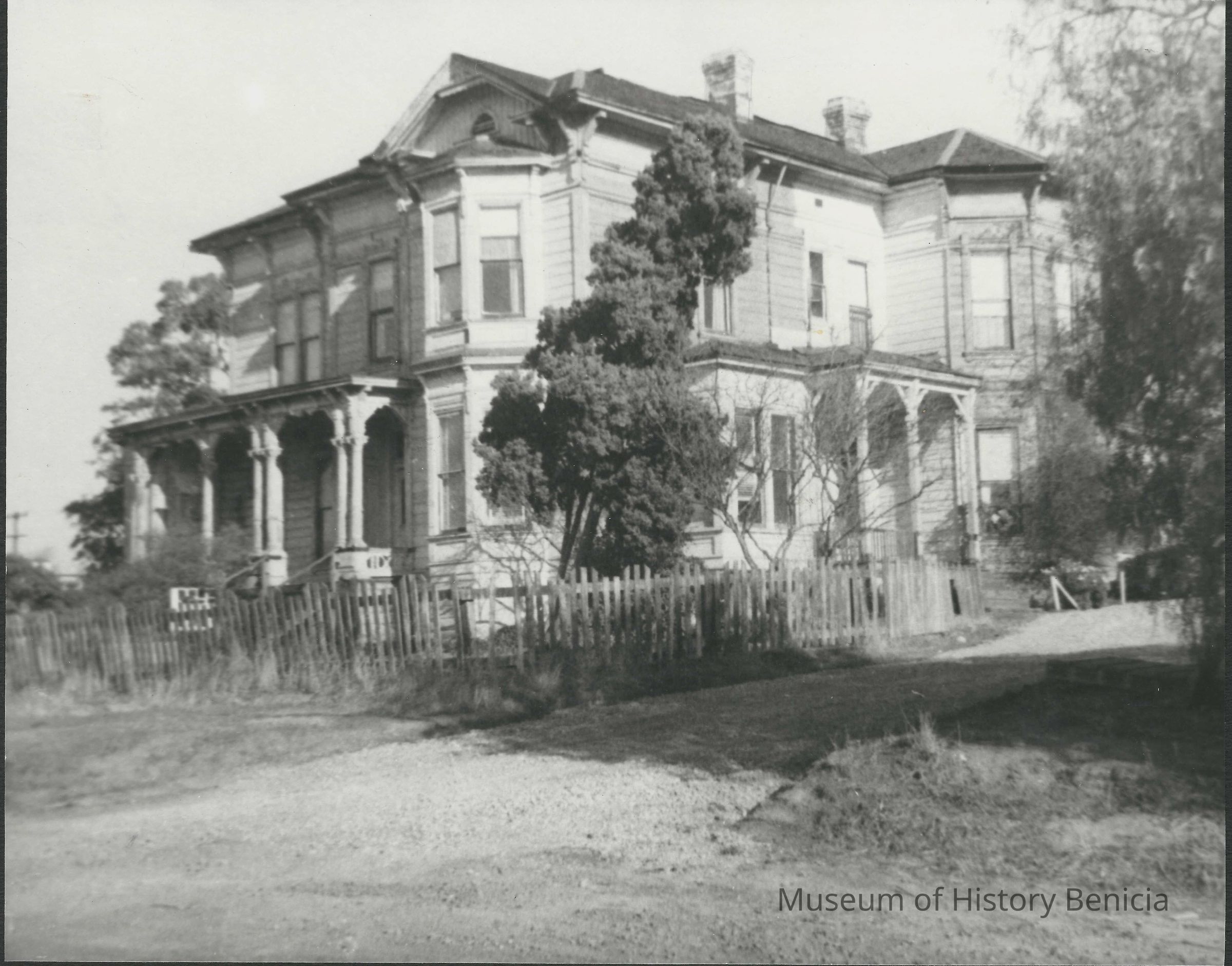 Black and white photo of the Andrew Goodyear home. The Andrew Goodyear family came to Benicia in the early days. This home was on East Fifth Street and was abandoned at the time of this photo. It was later demolished for the East Fifth Street onramp to the 780 freeway.Collection