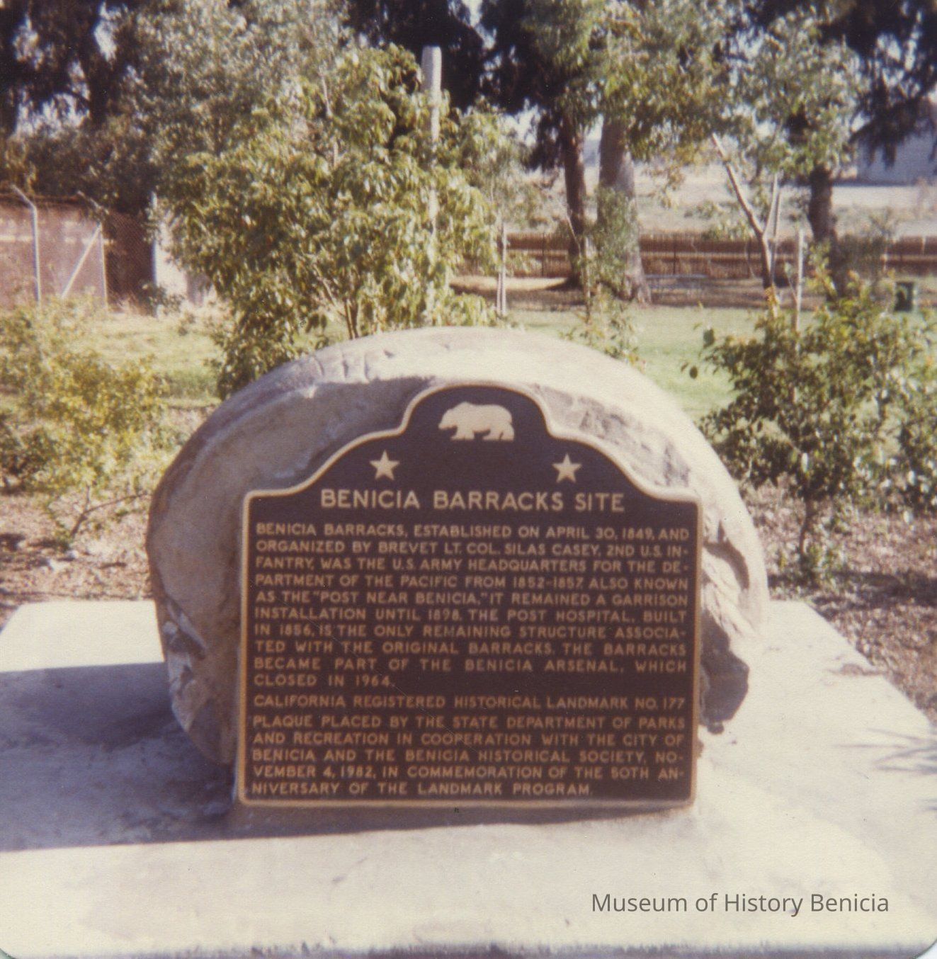 Color Photograph - bronze plaque attached to a rock at "Benicia Barracks Site"
