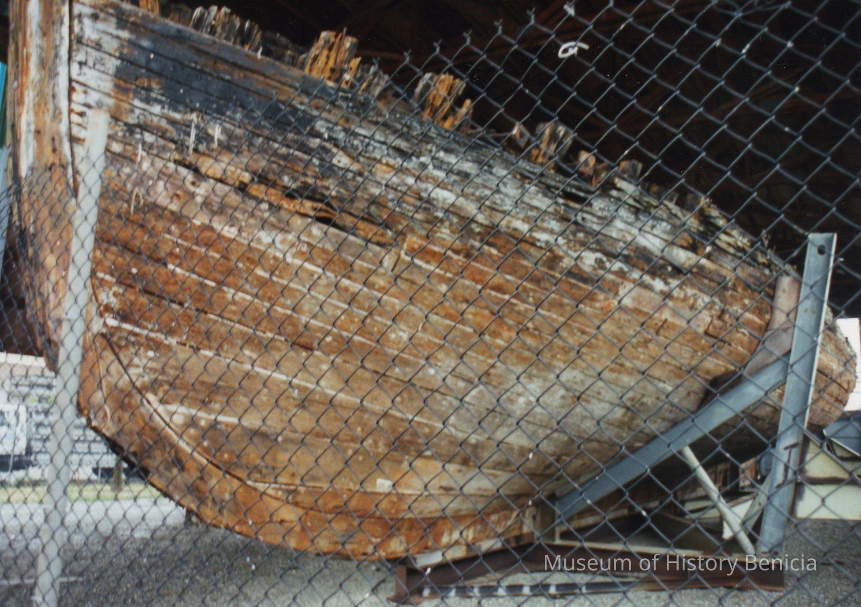 Color photo of a tugboat built at Matthew Turner Shipyard. The hull is housed under a roof near the waterfront in Everett, Washington.