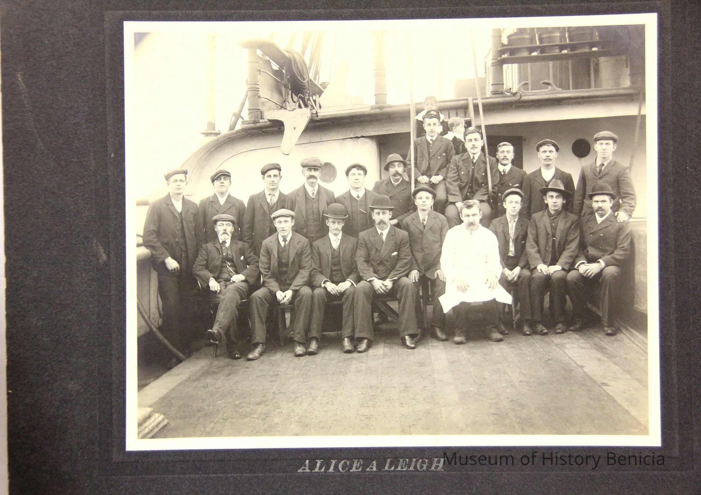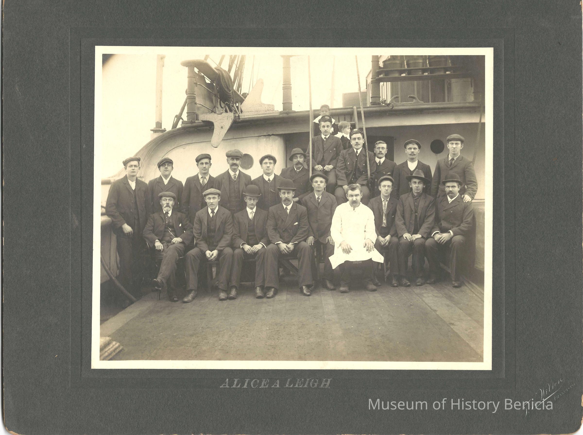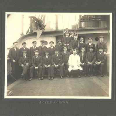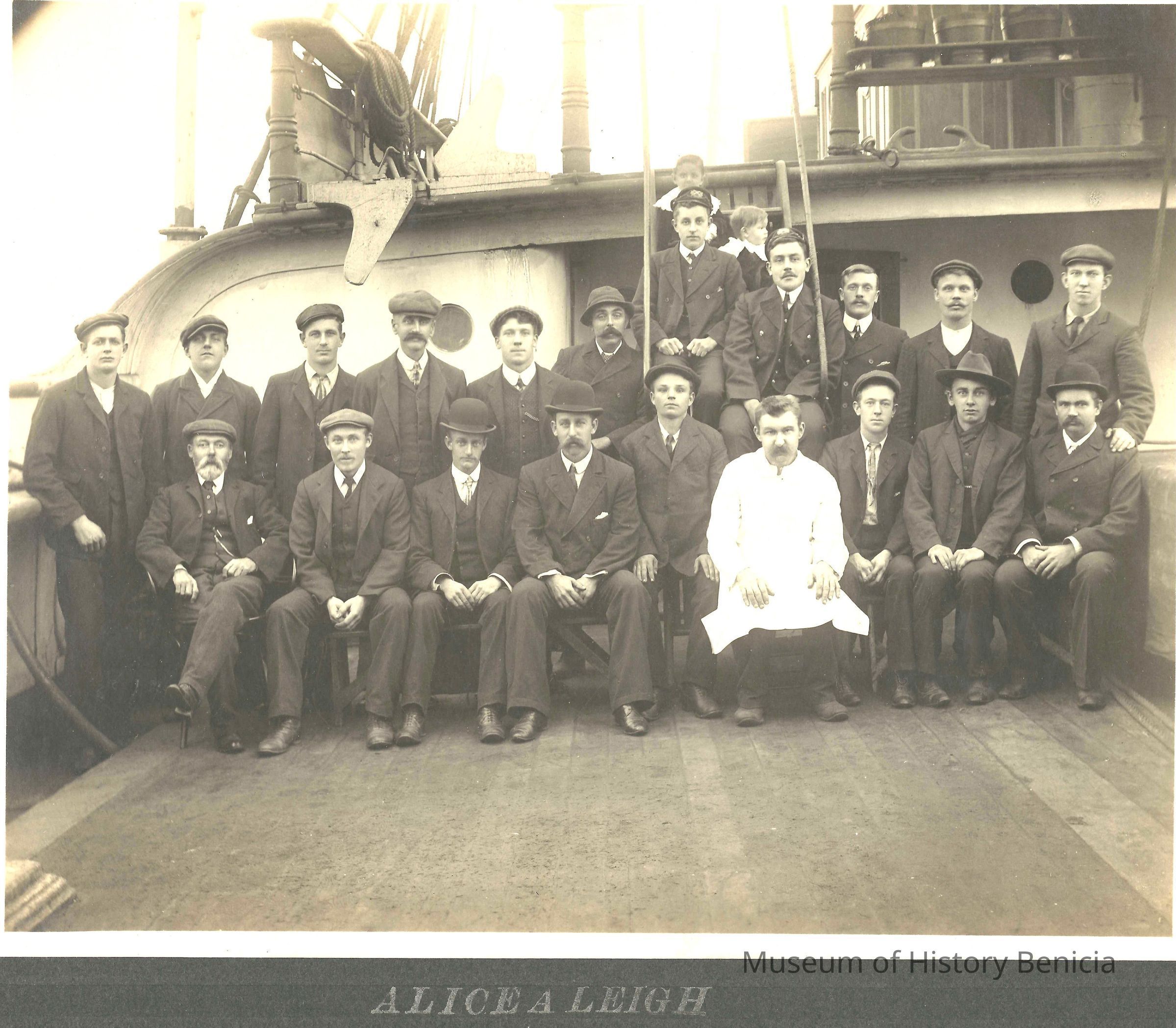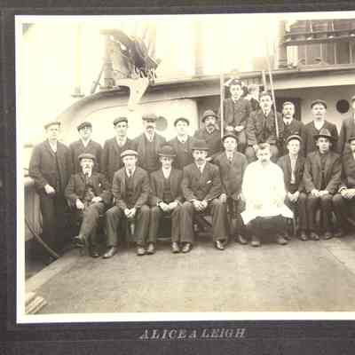 Photo of a ship's crew . The printed title says "Alice A Leigh".