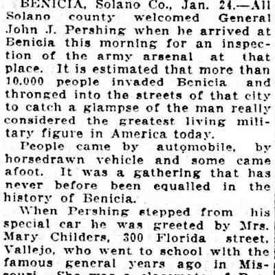 Pershings schedule - Sacramento, Mather Field Jan 23 / Benicia Jan. 24, 1920 / Jan 24-25 San FranciscoCollection