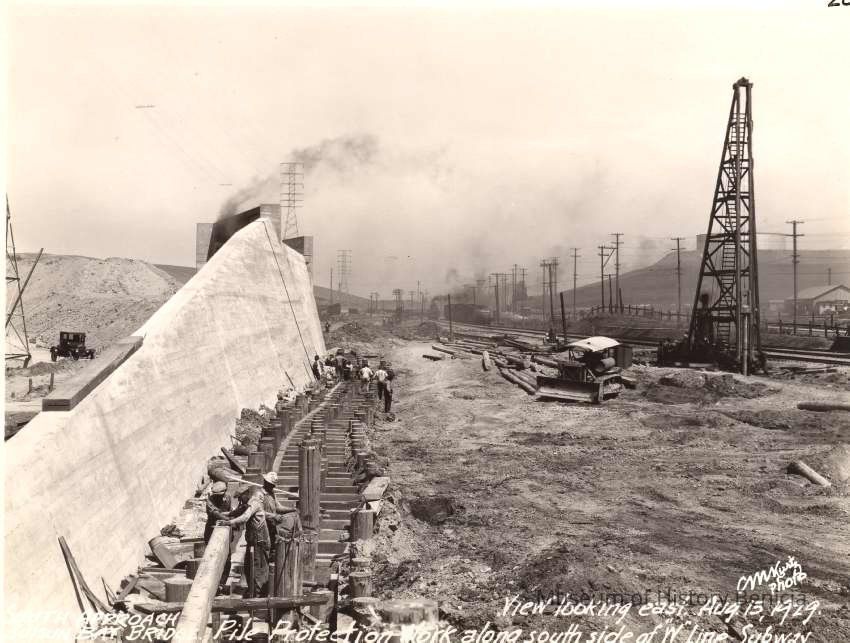 Photo of the building of the Suisun Bridge. Photos are numbered and annotated.