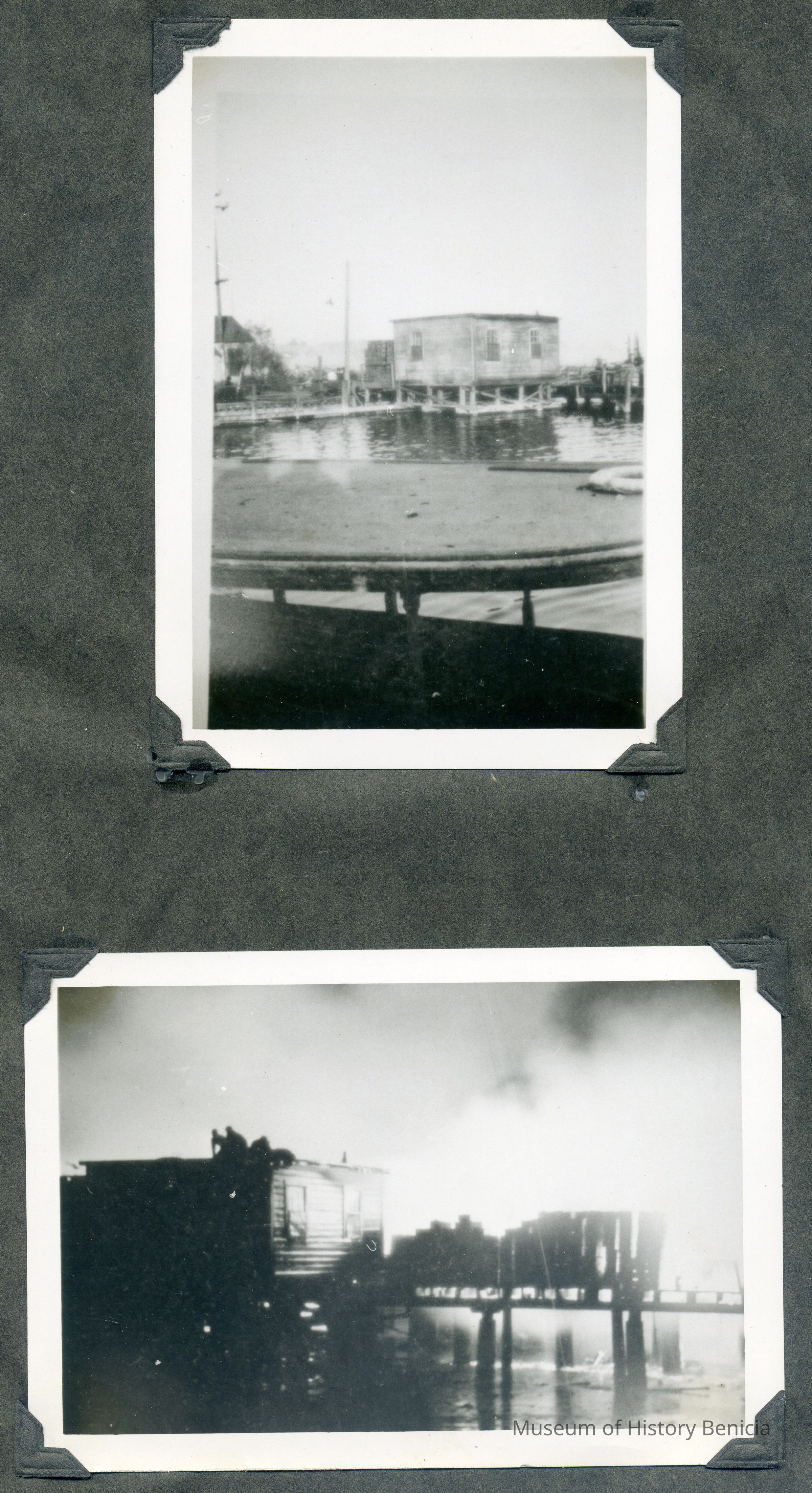 B/W photographs of Benicia Cannery during fire and afterwards.Collection