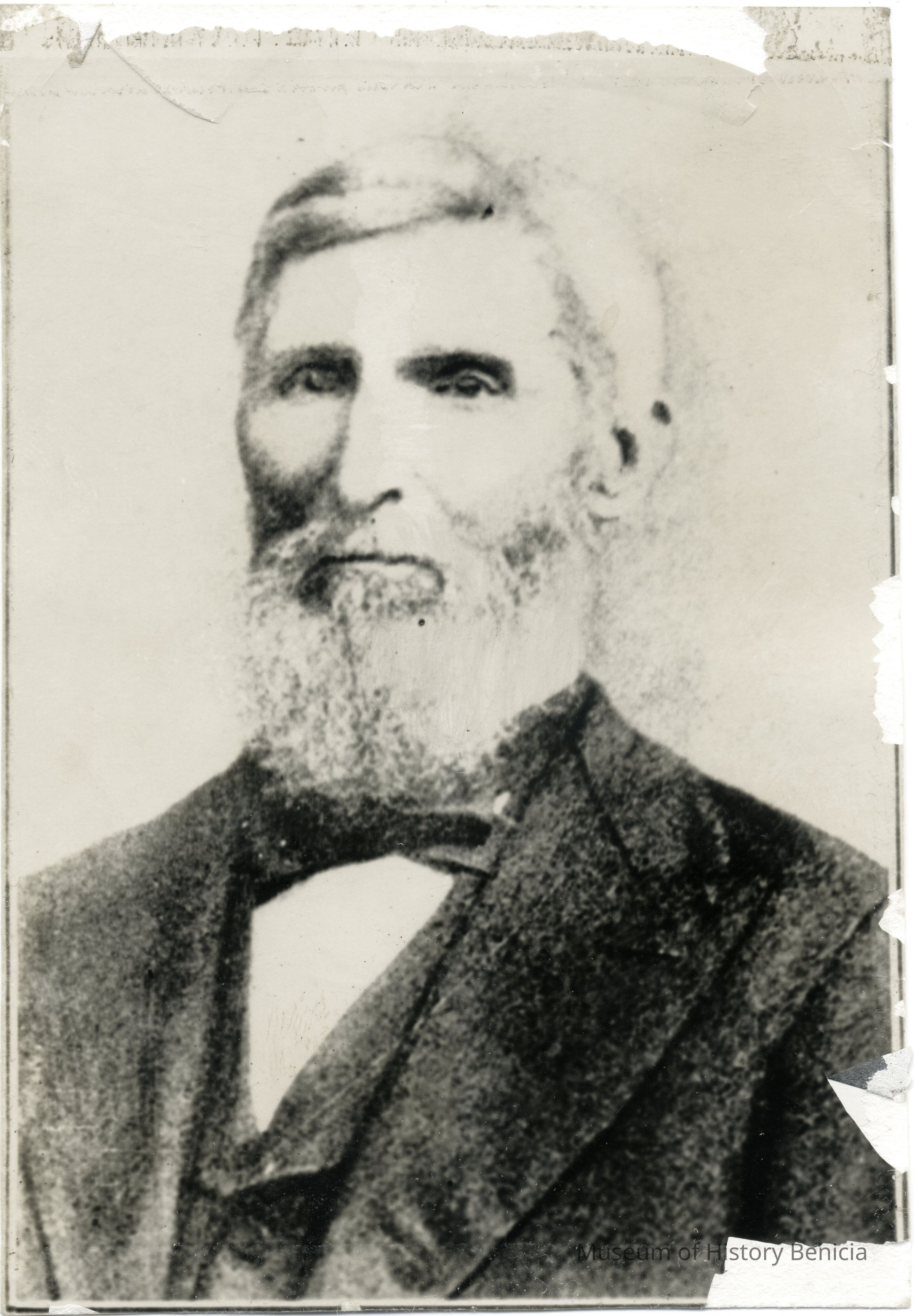 B/W Photograph: Rev. Sylvester Woodbridge, minister of first California Protestant church congregation, 1849. Woodbridge built the Presbyterian Church in 1850. He also served as the school teacher.Collection