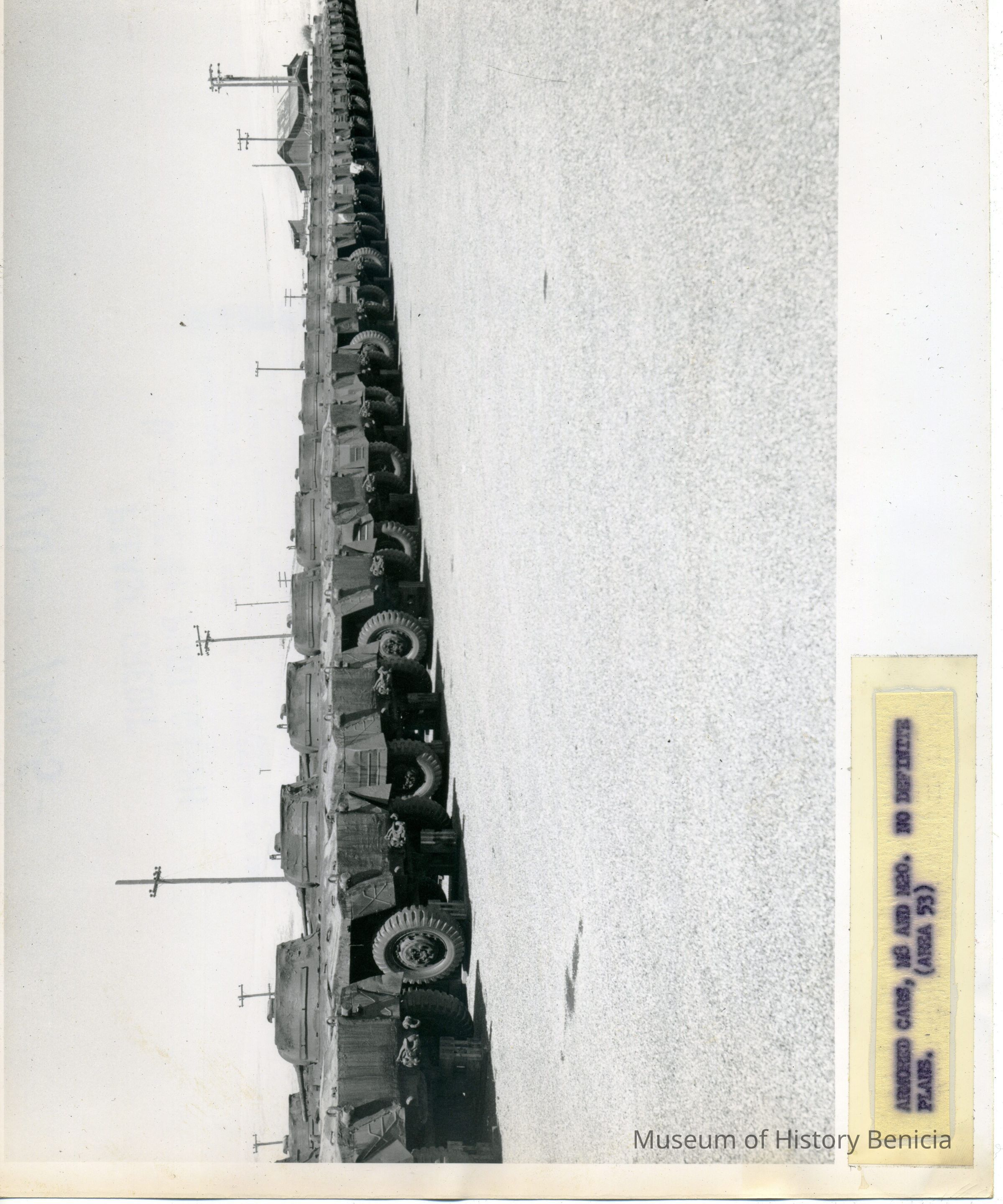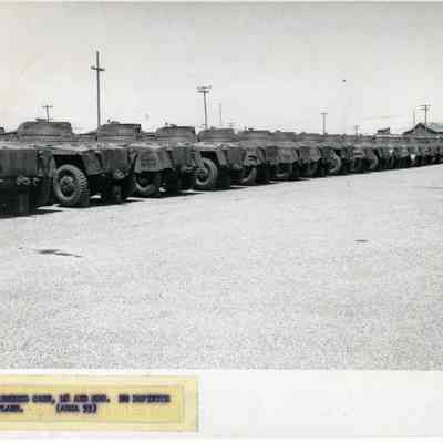 Photo from the Josephine Cowell research material. Shows armoured cars, M8 and M20. No definite plans (area 53)