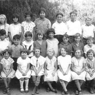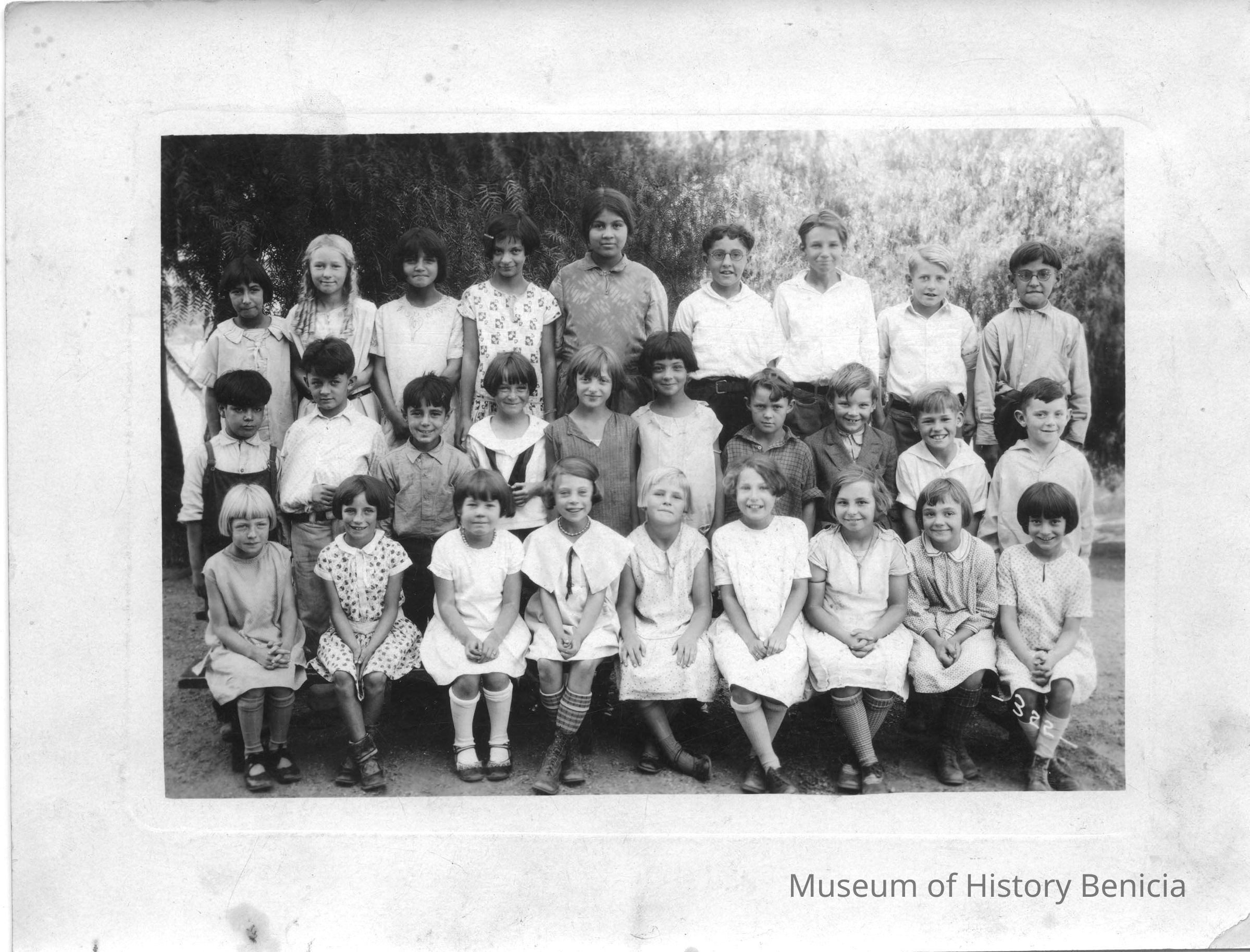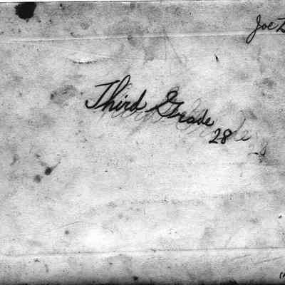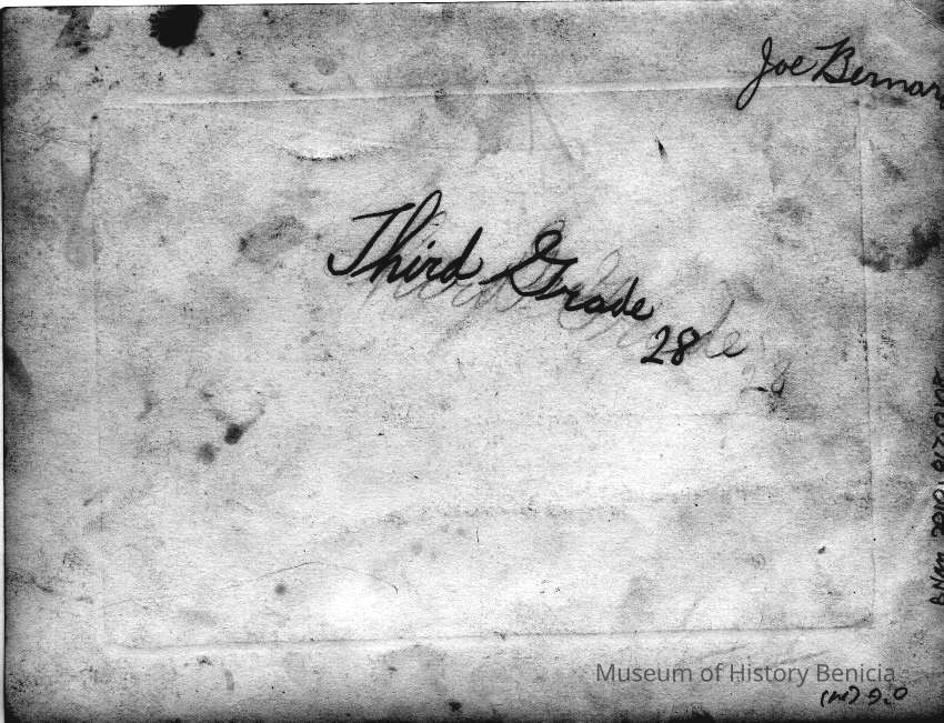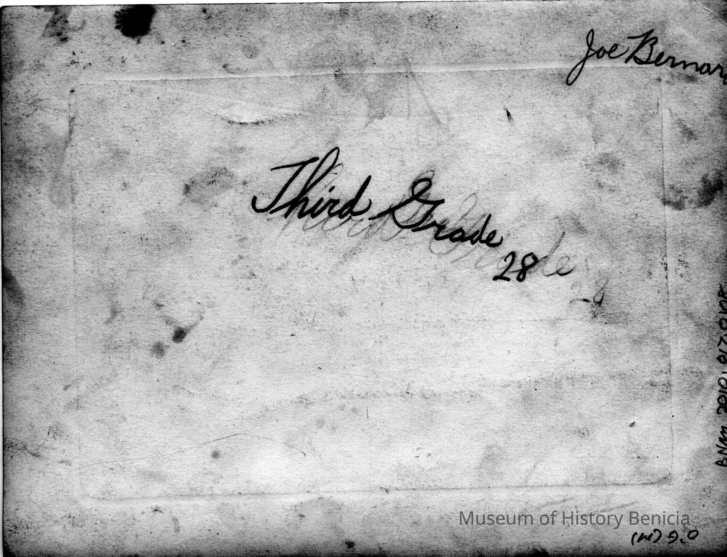 Photo of grade school kids in three rows. Looks like a class graduation. The back has written in pencil "third grade 28 and the name Joe BernardCollection