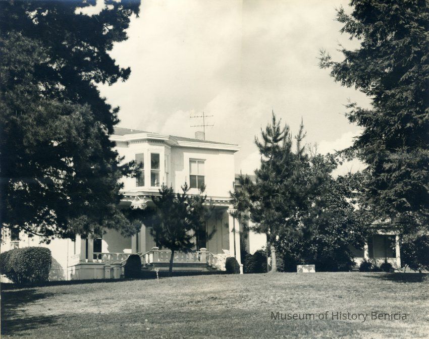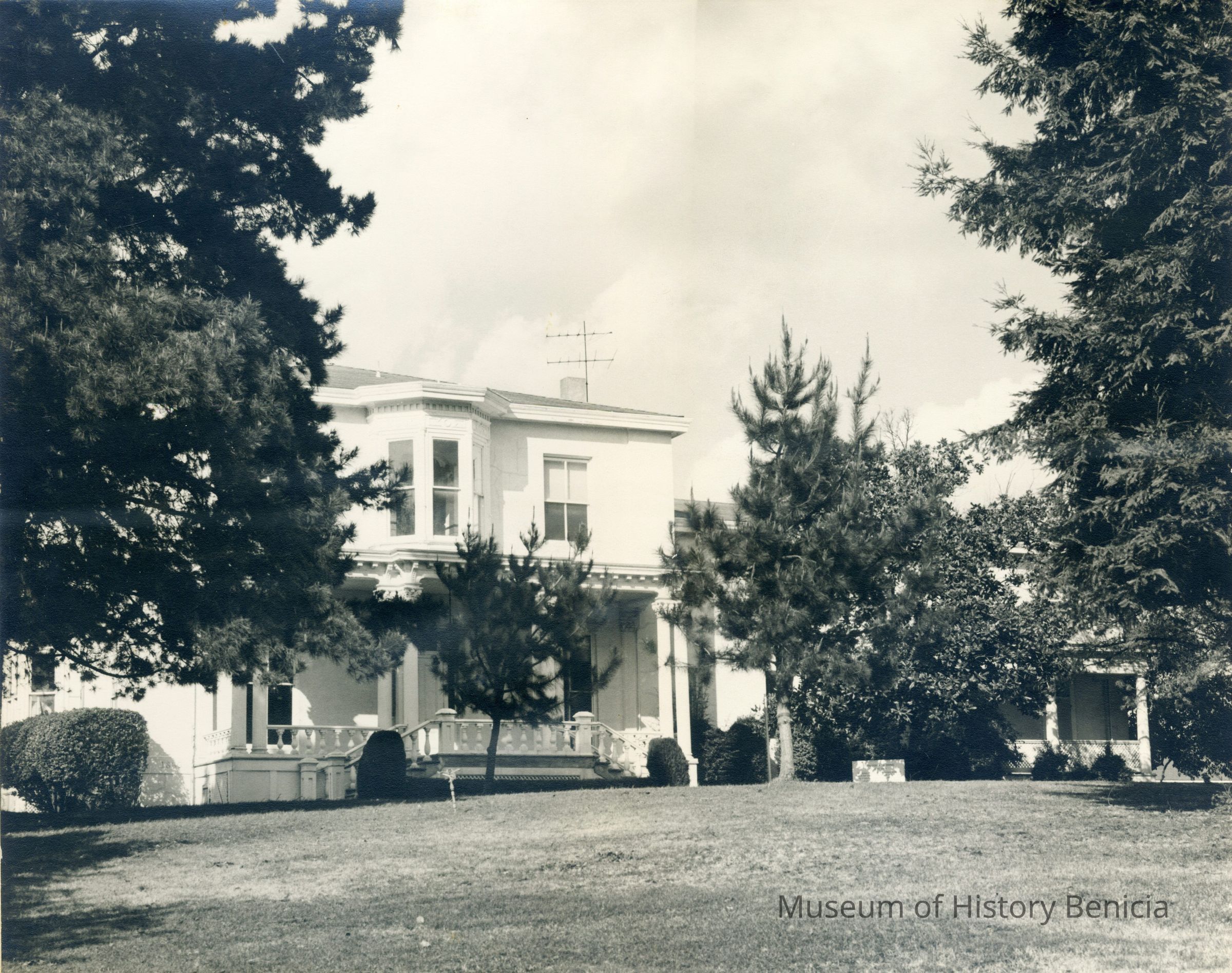 B/W matted photograph of the Commandant's Home with a clear view of the veranda.