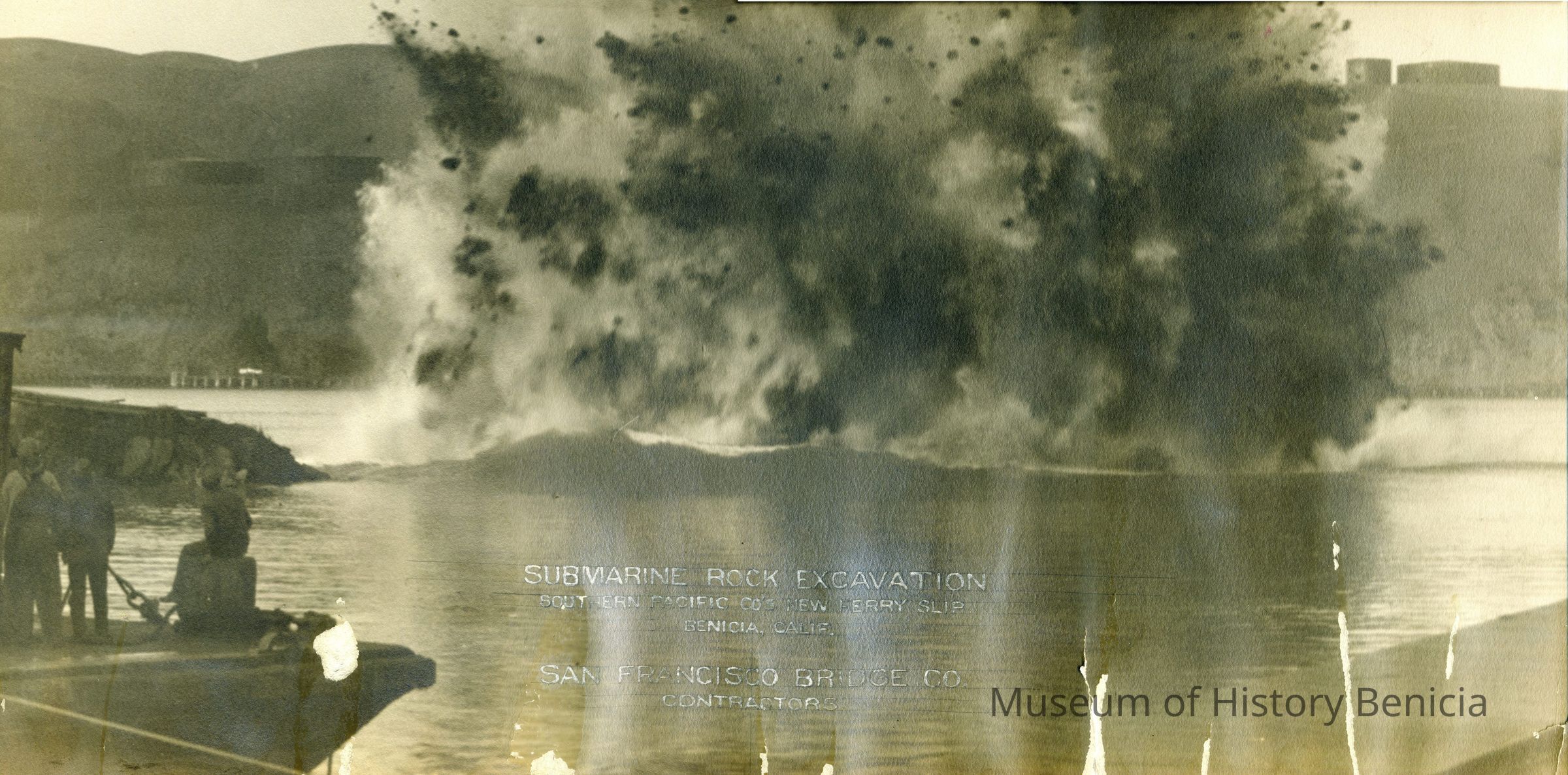 B/W Photograph - Scene of an explosion under water near the end of First Street Benicia CA