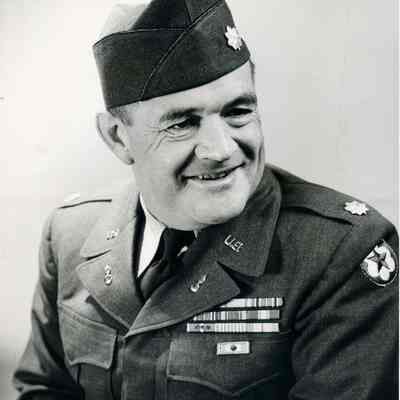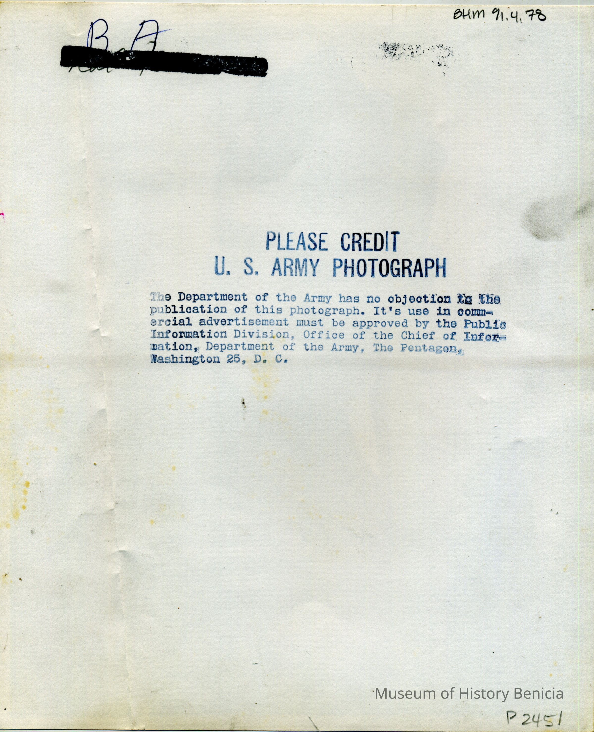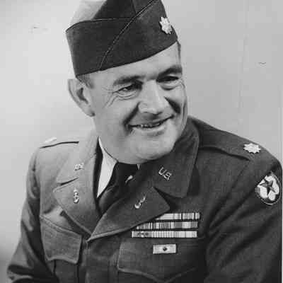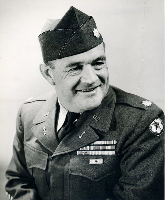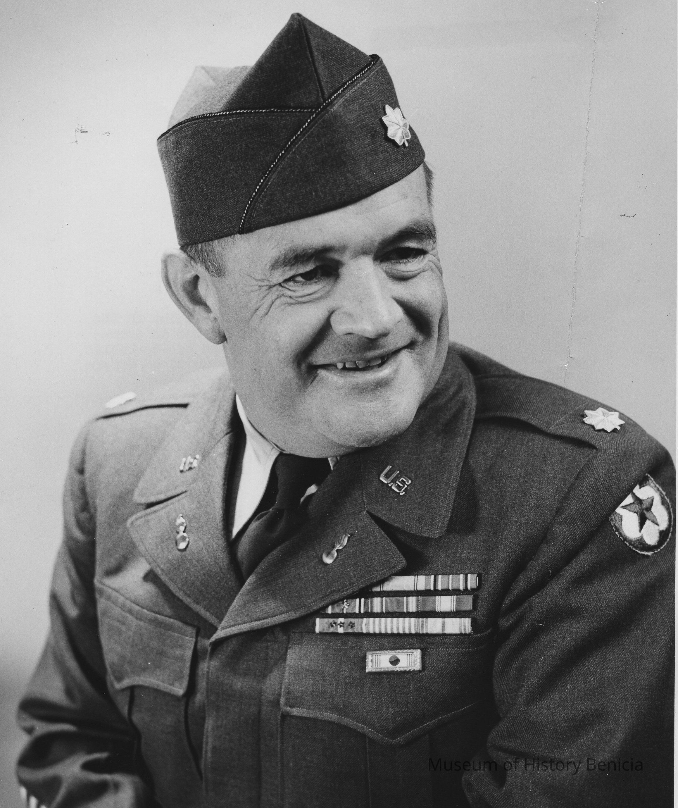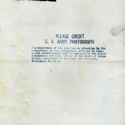 B/W Photograph: mid-chest up view of Major Harold Alvin Miller in army uniform and cap. U.S. Army photo stamp on back.