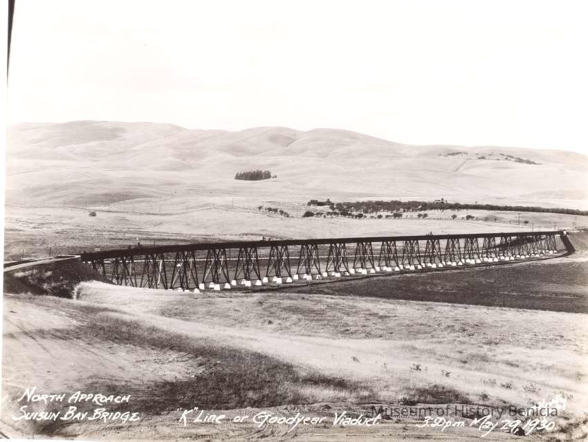 caption is: North Approach Suisun Bay Bridge "K" line or Goodyear viaduct