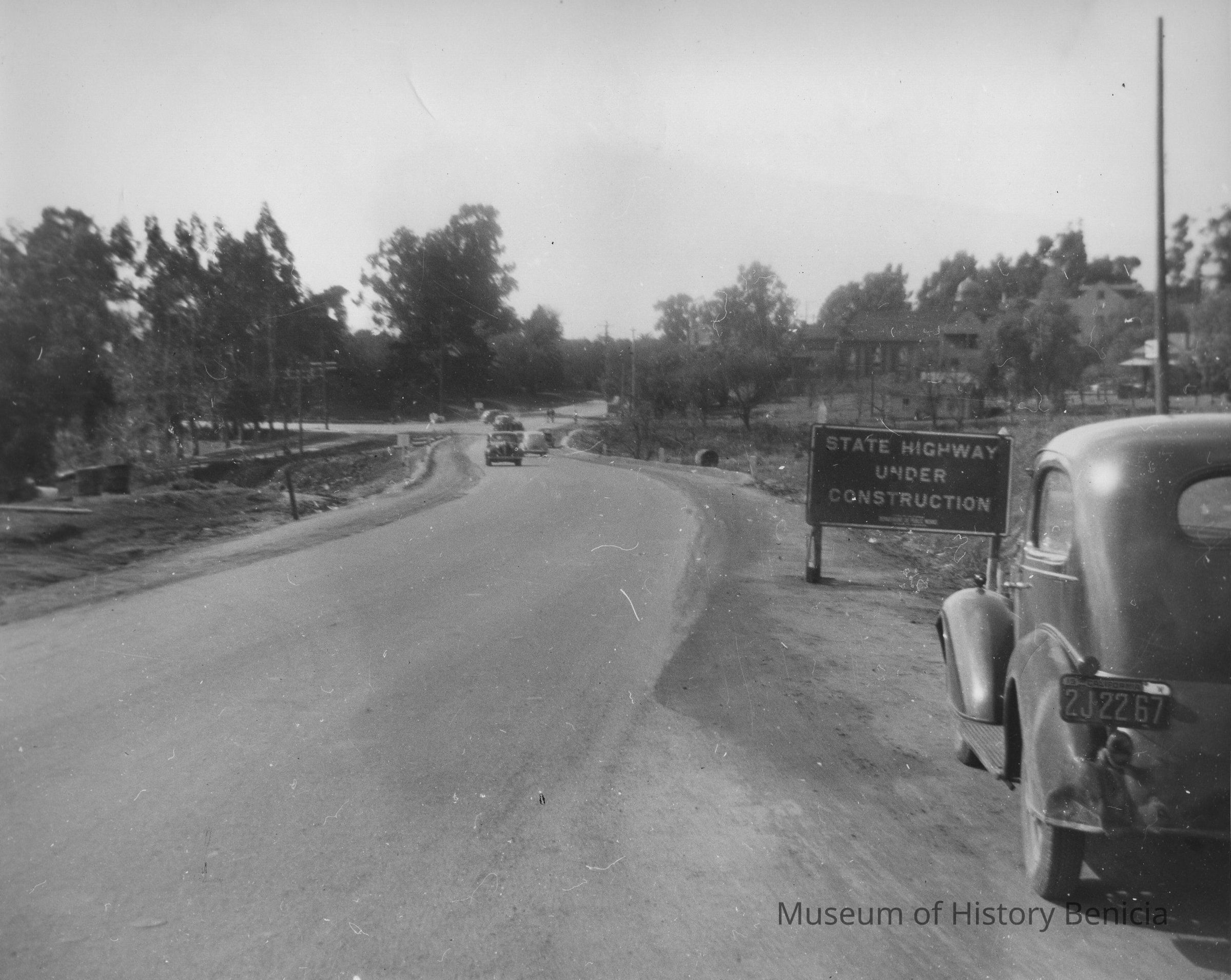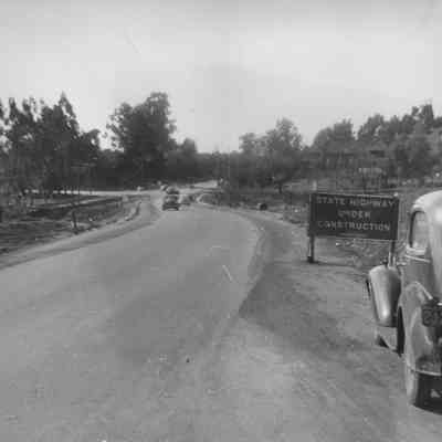 State Highway under construction, located near First St. and Military. St. Catherine's in background on right. B/W photo. Area shown is the 100 block of Military East (photo is taken from intersection with East Second StreetCollection