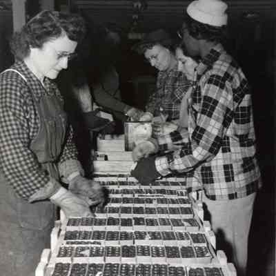 Photo from the Josephine Cowell research material. Shows women packing ammo into boxes.
