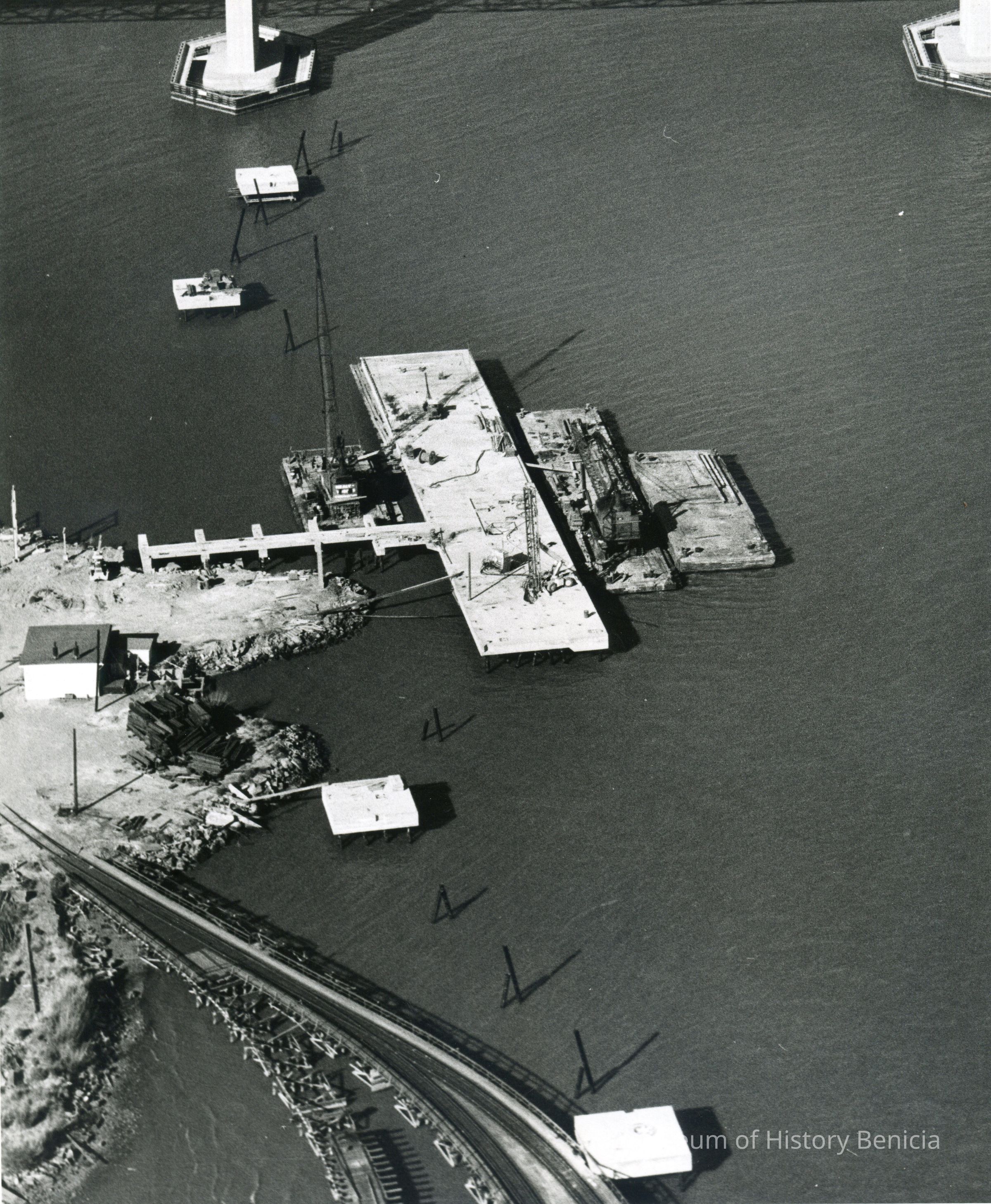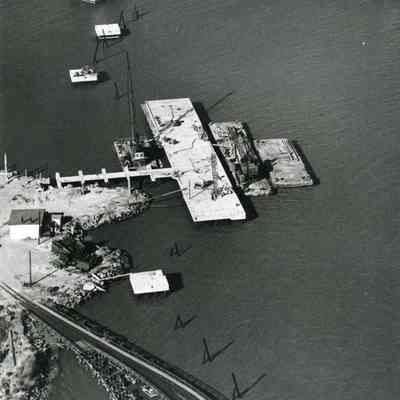 B/W aerial photo - enlargement of section of pier/dock project in BHM99.11.585 Healy Tibbitts Construction Company