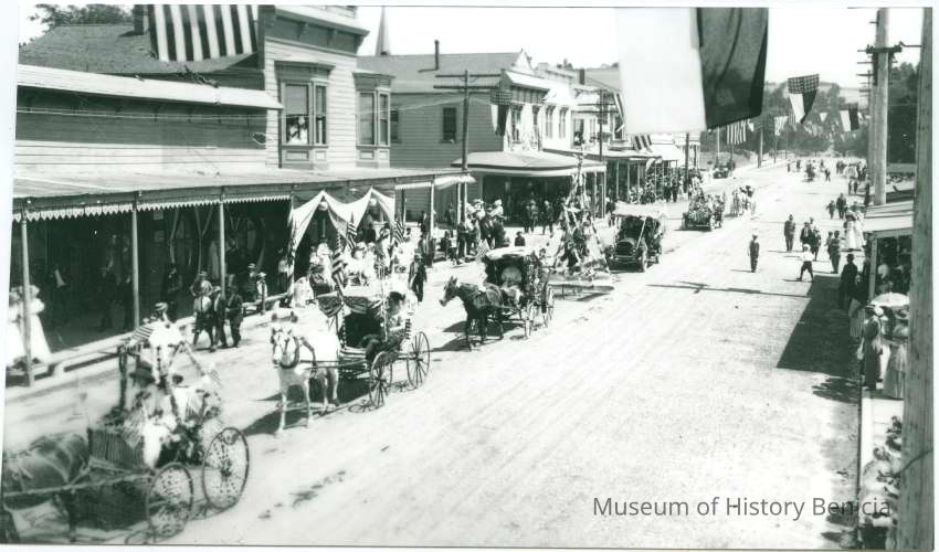 B/W Photograph: Parade on First Street, Benicia, circa 1910. (reprint from an original negative)