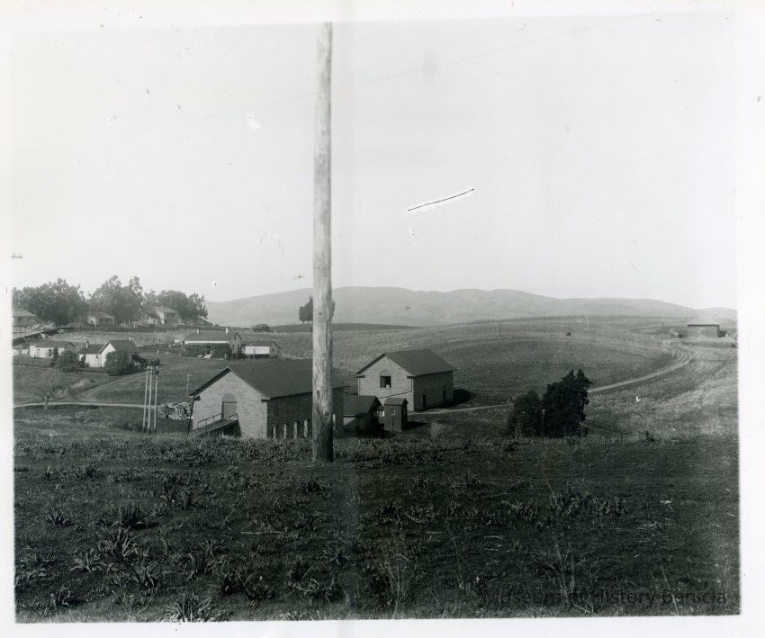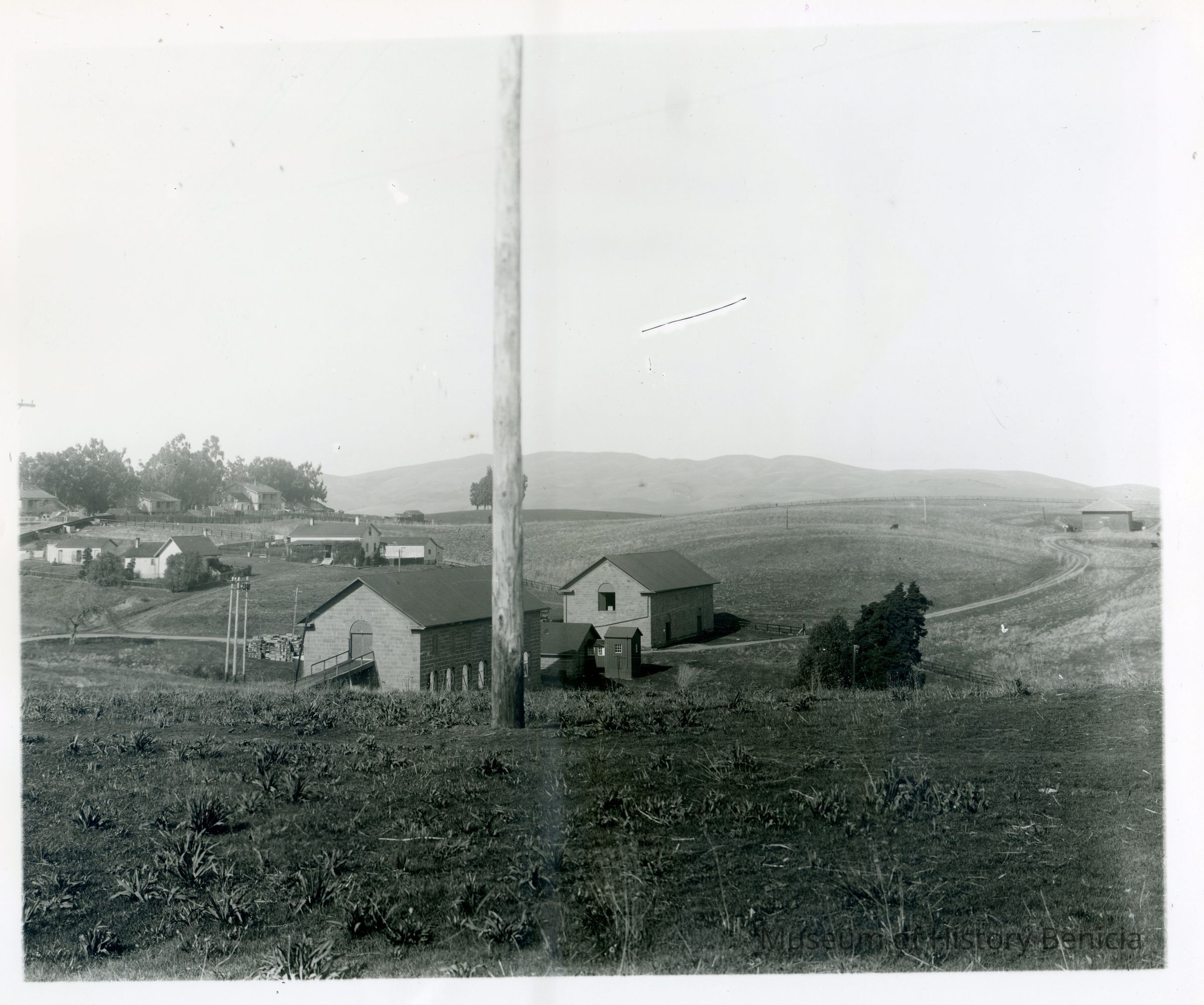 B/W Photograph: Benicia Arsenal wth Building 7, 8 and 9. In the far distance is Magazine 11 which was destoyed by fire in 1922.
