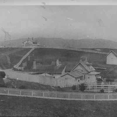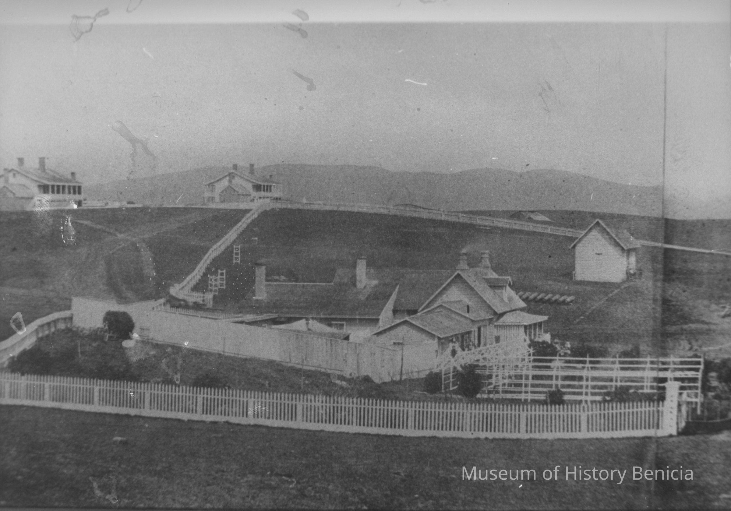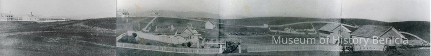B/W panoramic view of Arsenal/Benicia Barracks, 1865.