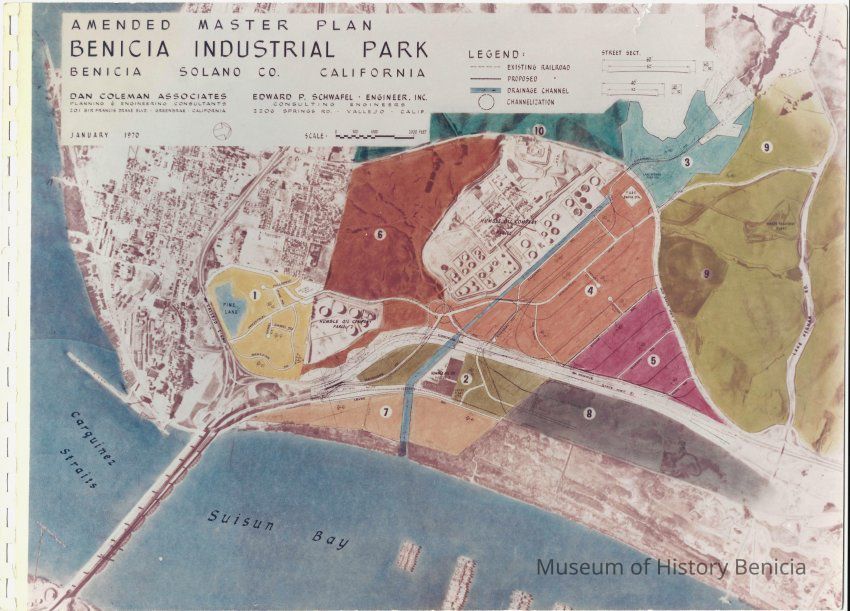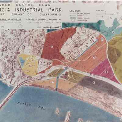 Color photo of engineer's rendering of amended master plan of Benicia's Industrial Park.