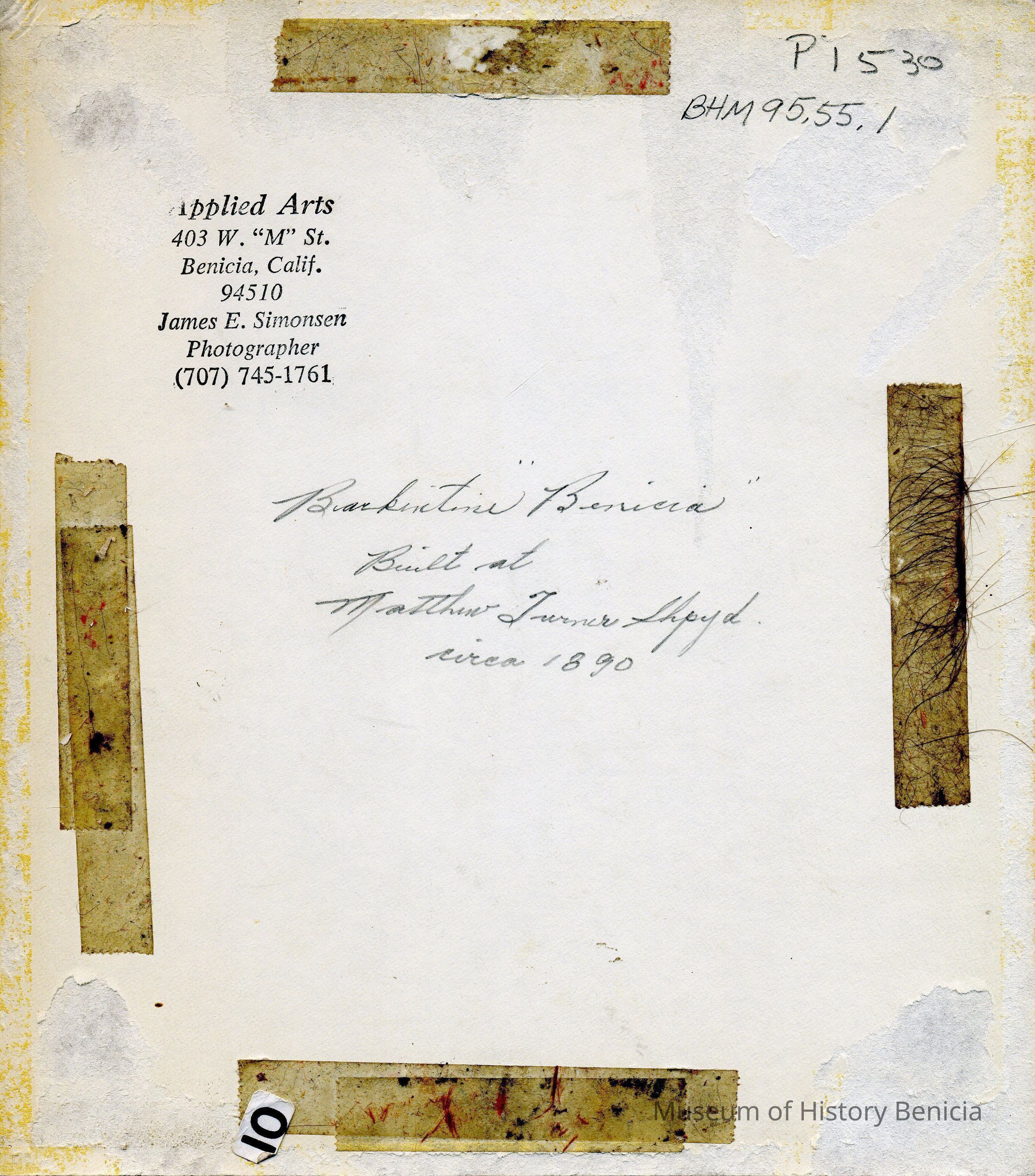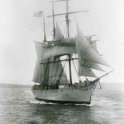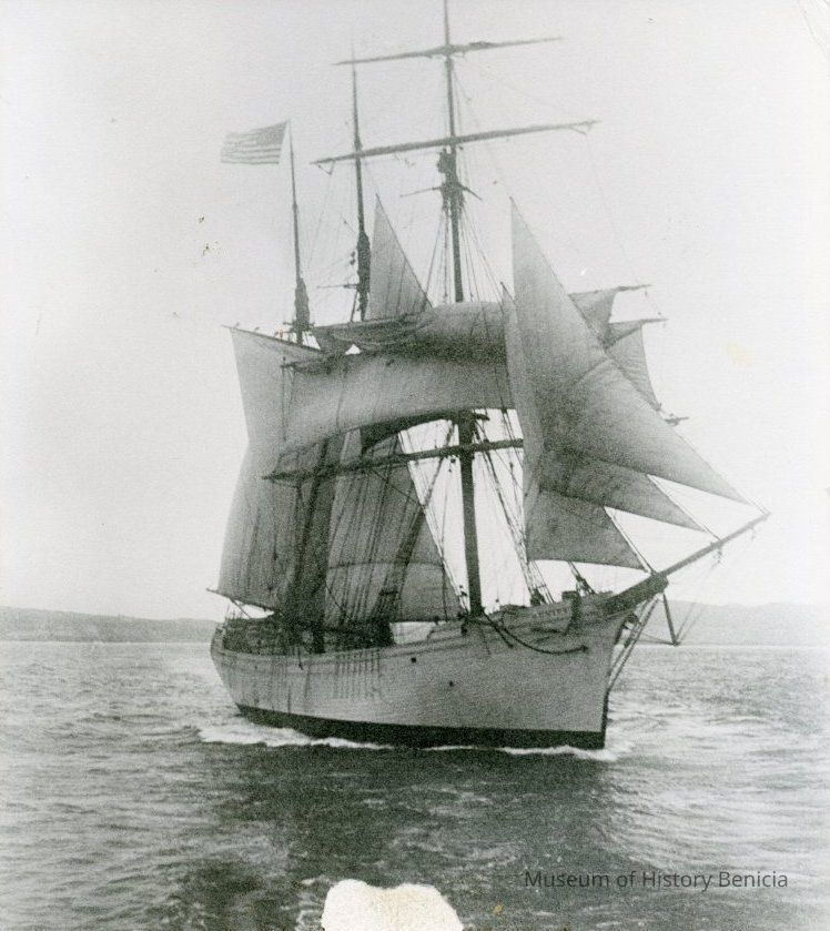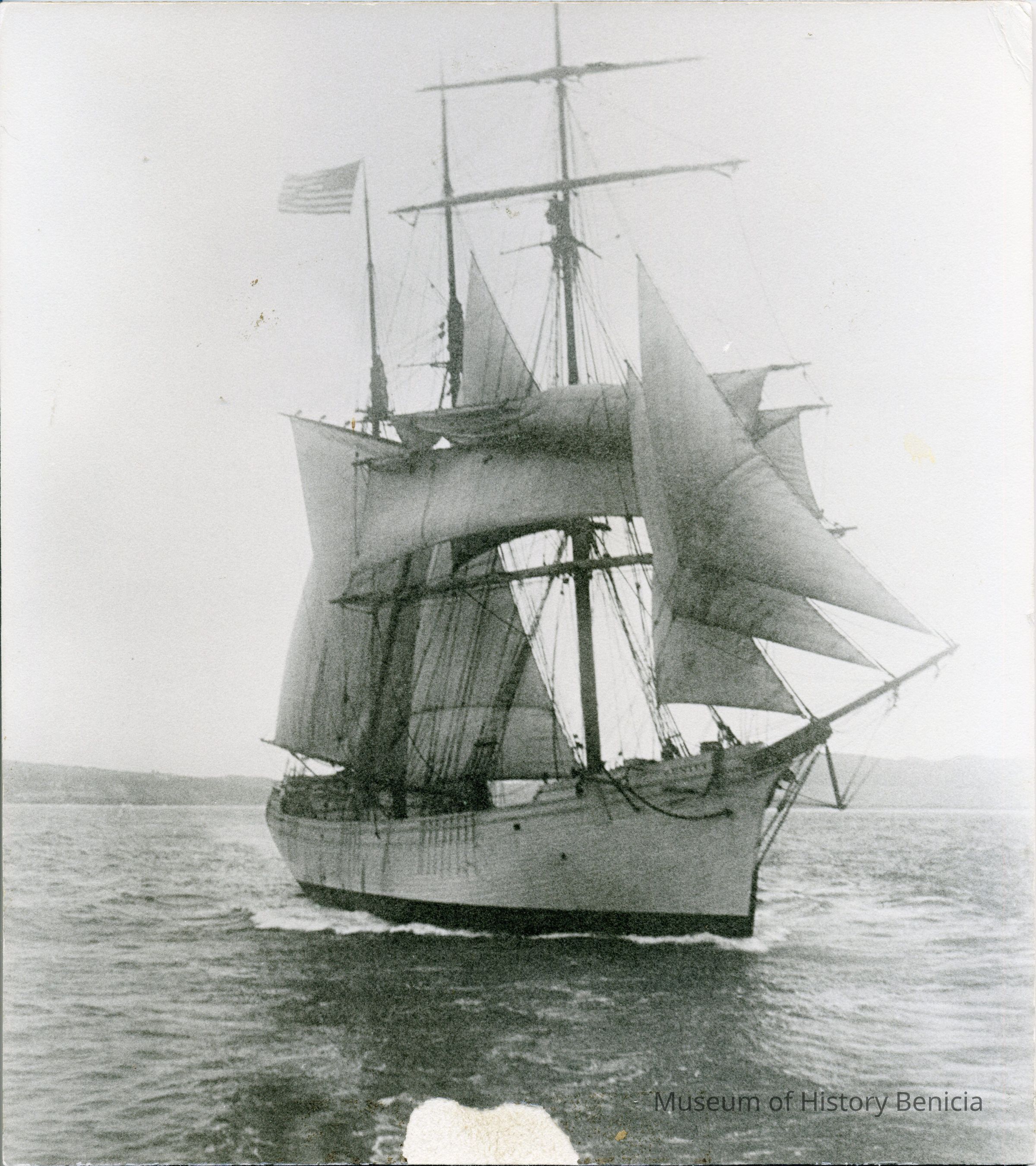 B/W photo of barkentine "Benicia", built at Matthew Turner Shipyard circa 1890.