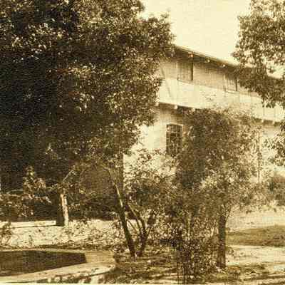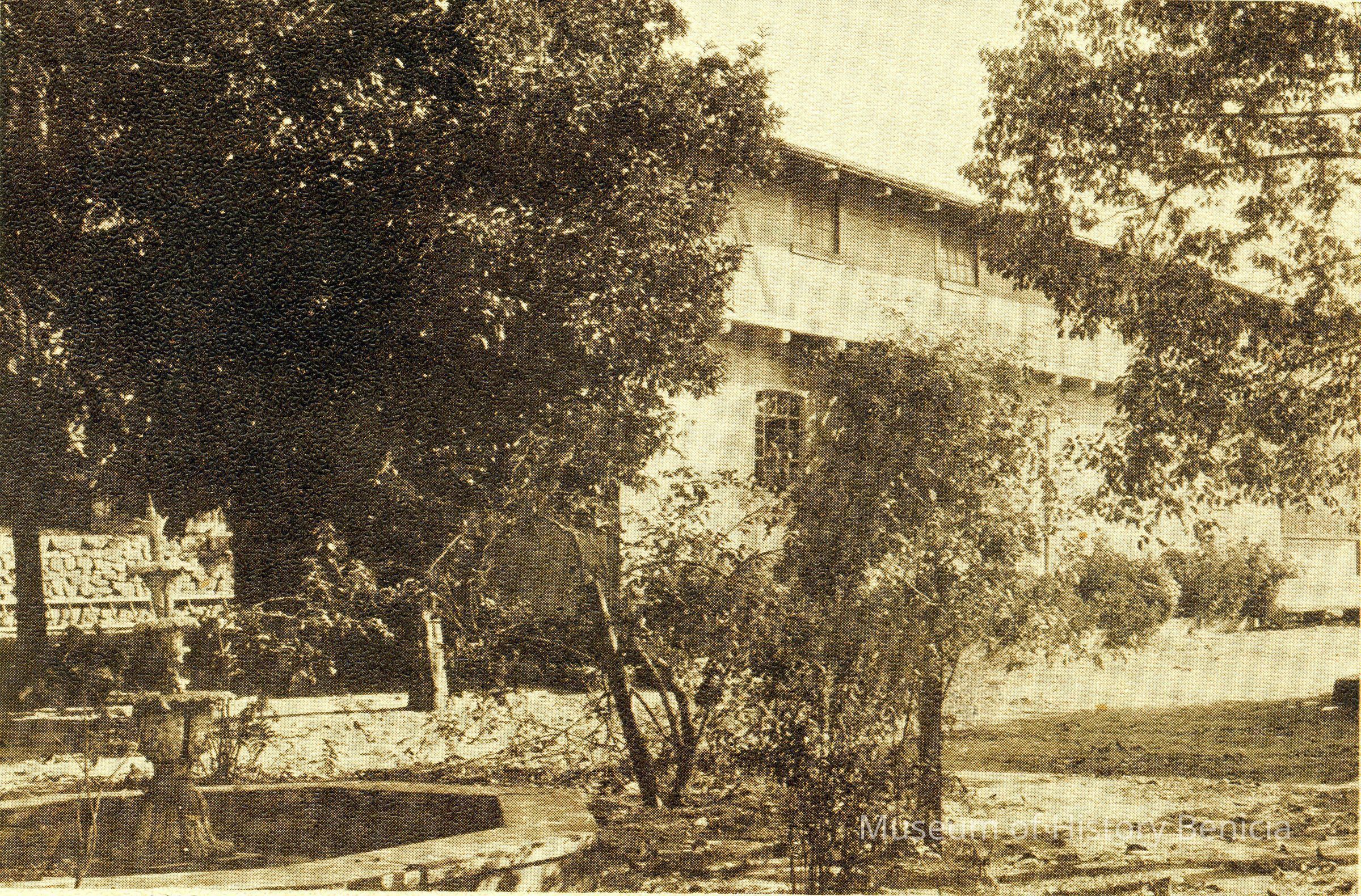 Sepia toned postcard with an image of General Vallejo's homestead showing a landmark there that came from Switzerland. The Lenoir Miller Collection.Collection