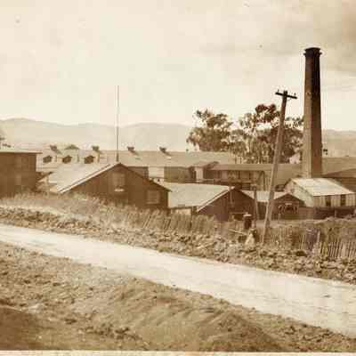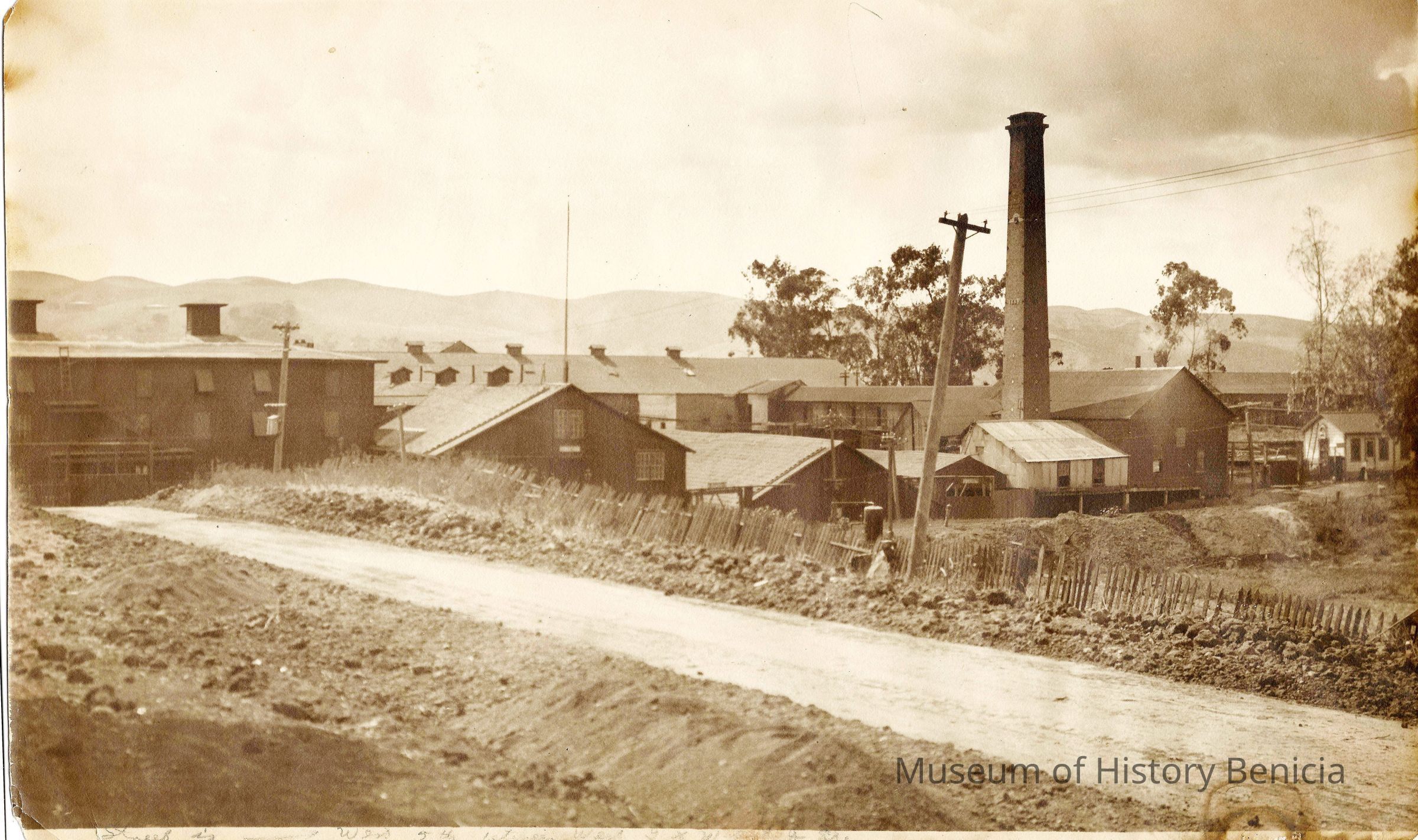 B/W Photograph: McKay Tannery in Benicia, 1885. One of the major leather tanneries in Benicia. Owners: Thomas McKay, Alec McKay, and Alec Chisholm.