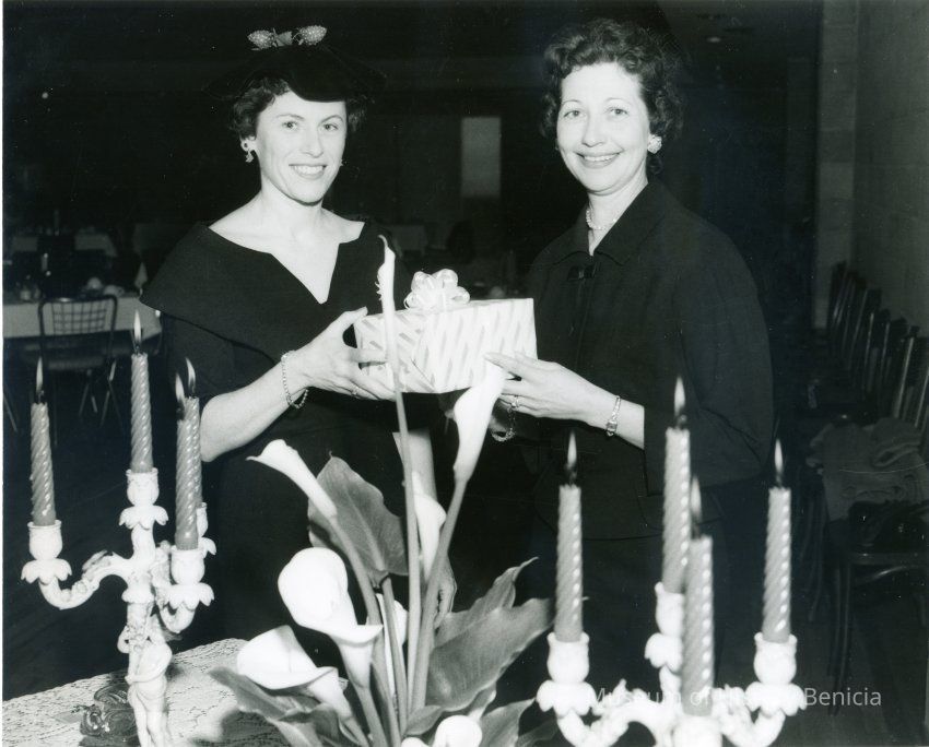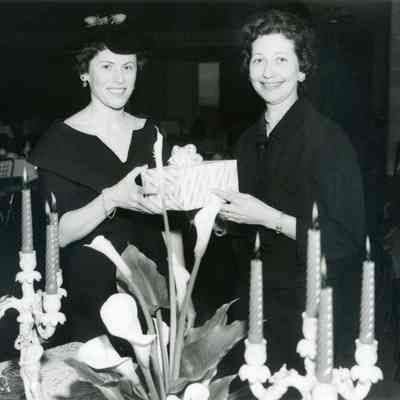 Social event apparently honoring Mrs. Fern Pressley. Mrs. Wells is making a presentation to Mrs. Pressley.Collection