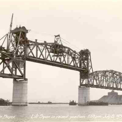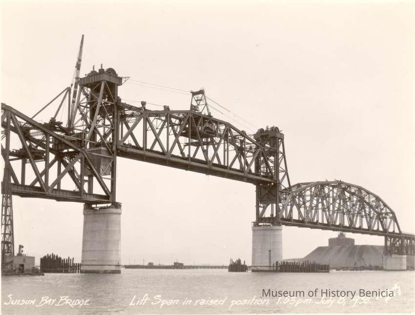 caption is: Suisun Bay Bridge Lift span in raised position
