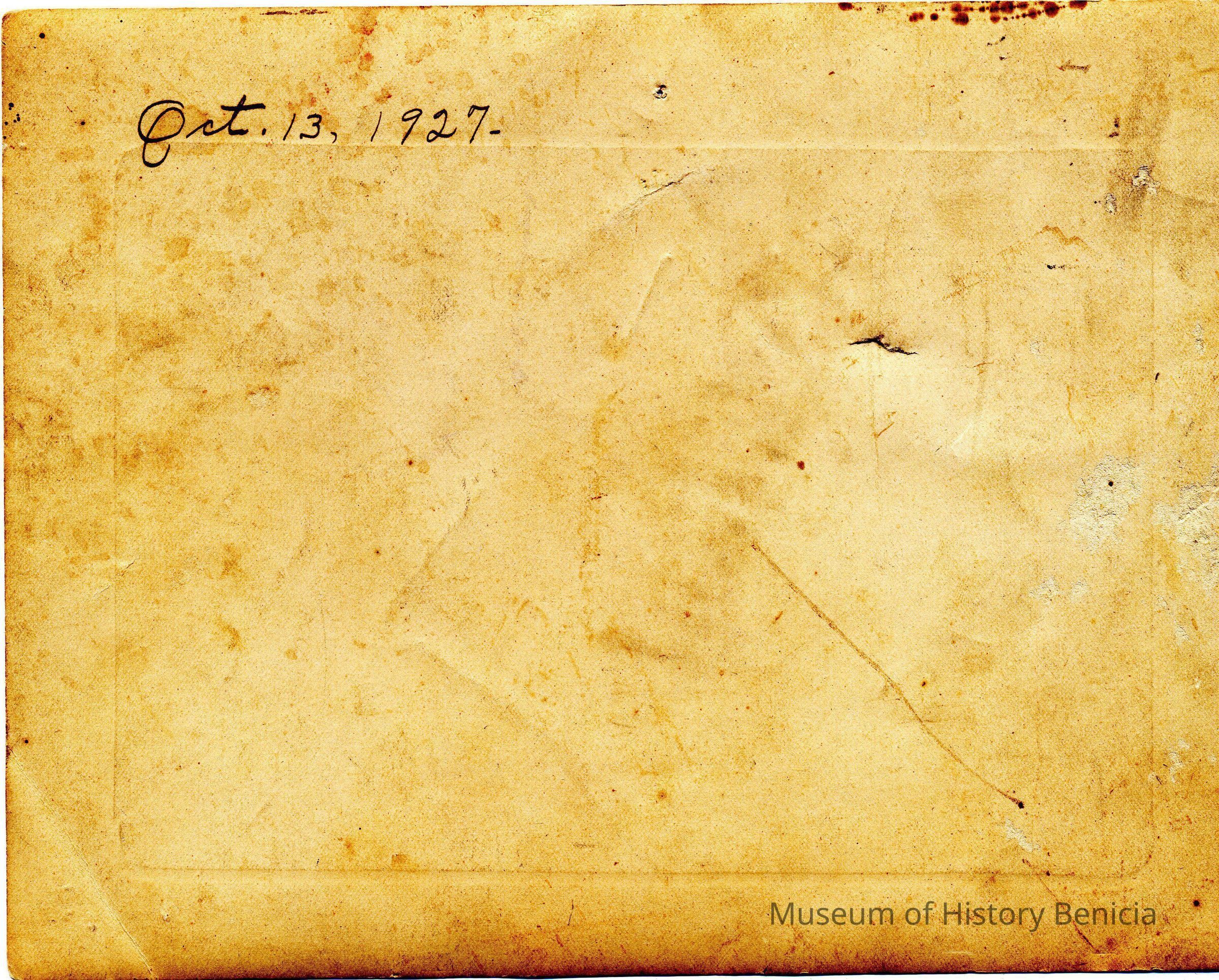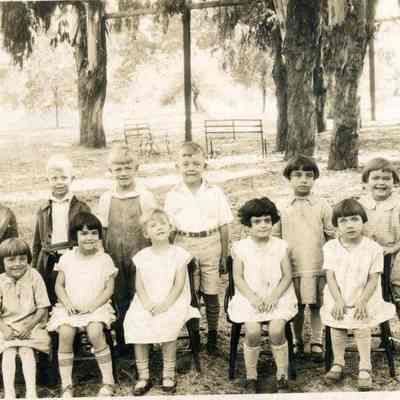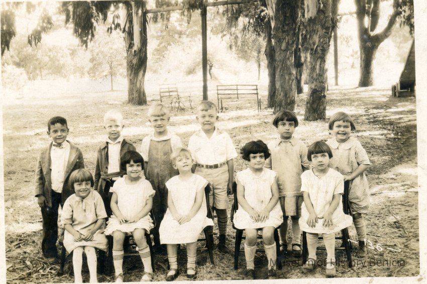 Photo of a grade school class taken in Benicia Park. On the back it has the date Oct. 13, 1927.