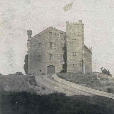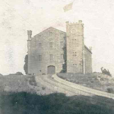 This is a photograph of the Clock Tower (building #29) before the explosion and fire in October, 1912. It shows the three stories of the building and with very little vegetation around the building.