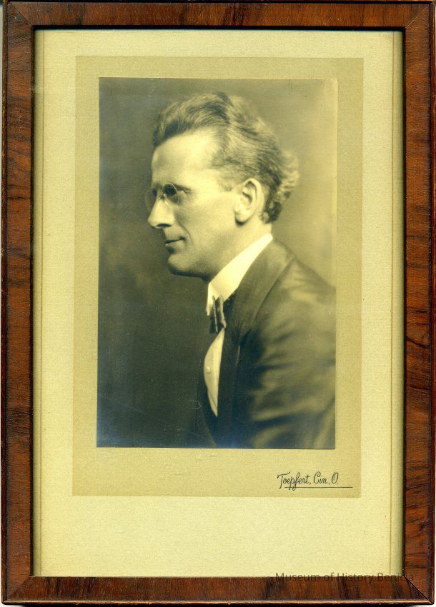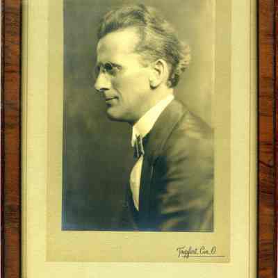 B/W Framed photograph of an unidentified man, seen in profile.