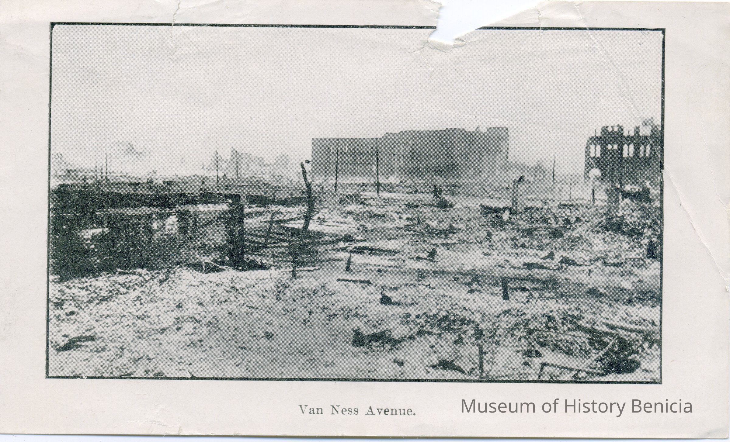 A photo of Van Ness Ave after the 1906 earthquake. May have been cut out of a magazine.