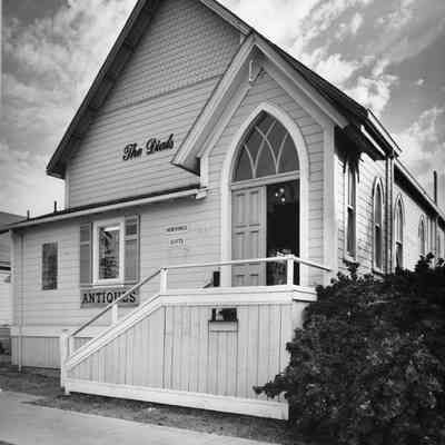 B/W photo of the Dials Antique Shop on West J Street. Photo appears as Figure 48 on page 42 of Bruegmann's book.