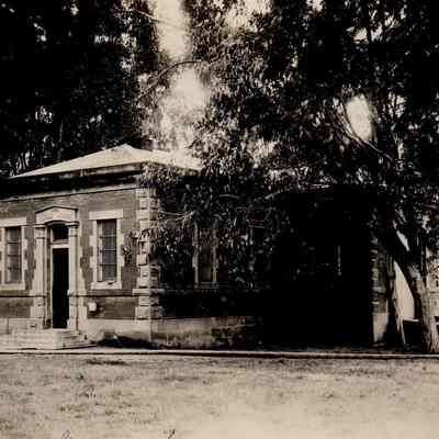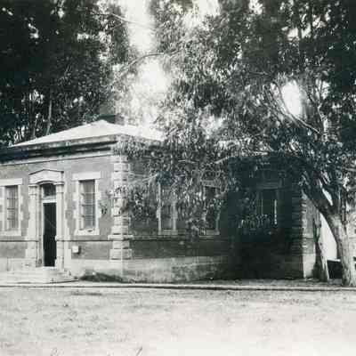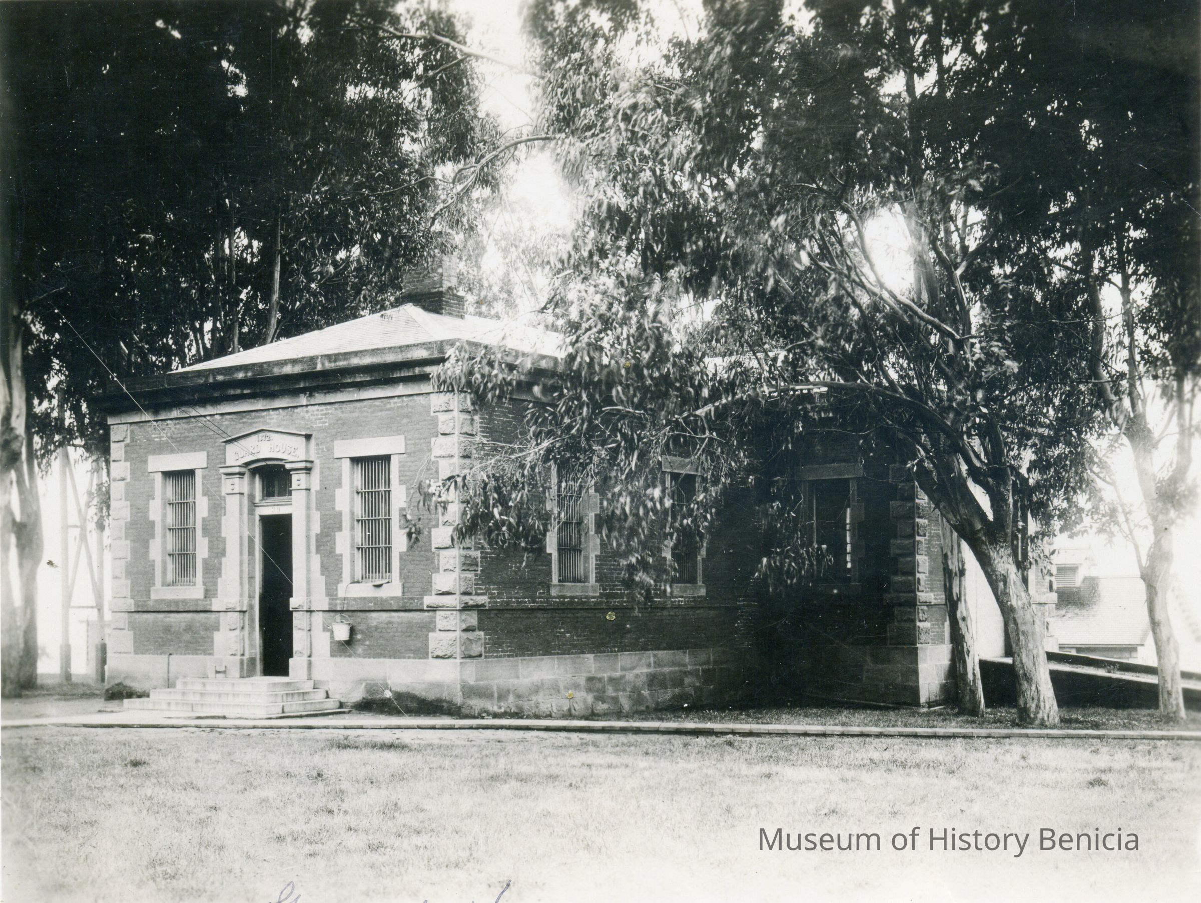 B/W photo of Guard House at Benicia Arsenal. Photo is Figure 123 in Bruegmann book. The Guard House, buildng 39, was built in 1872.Collection