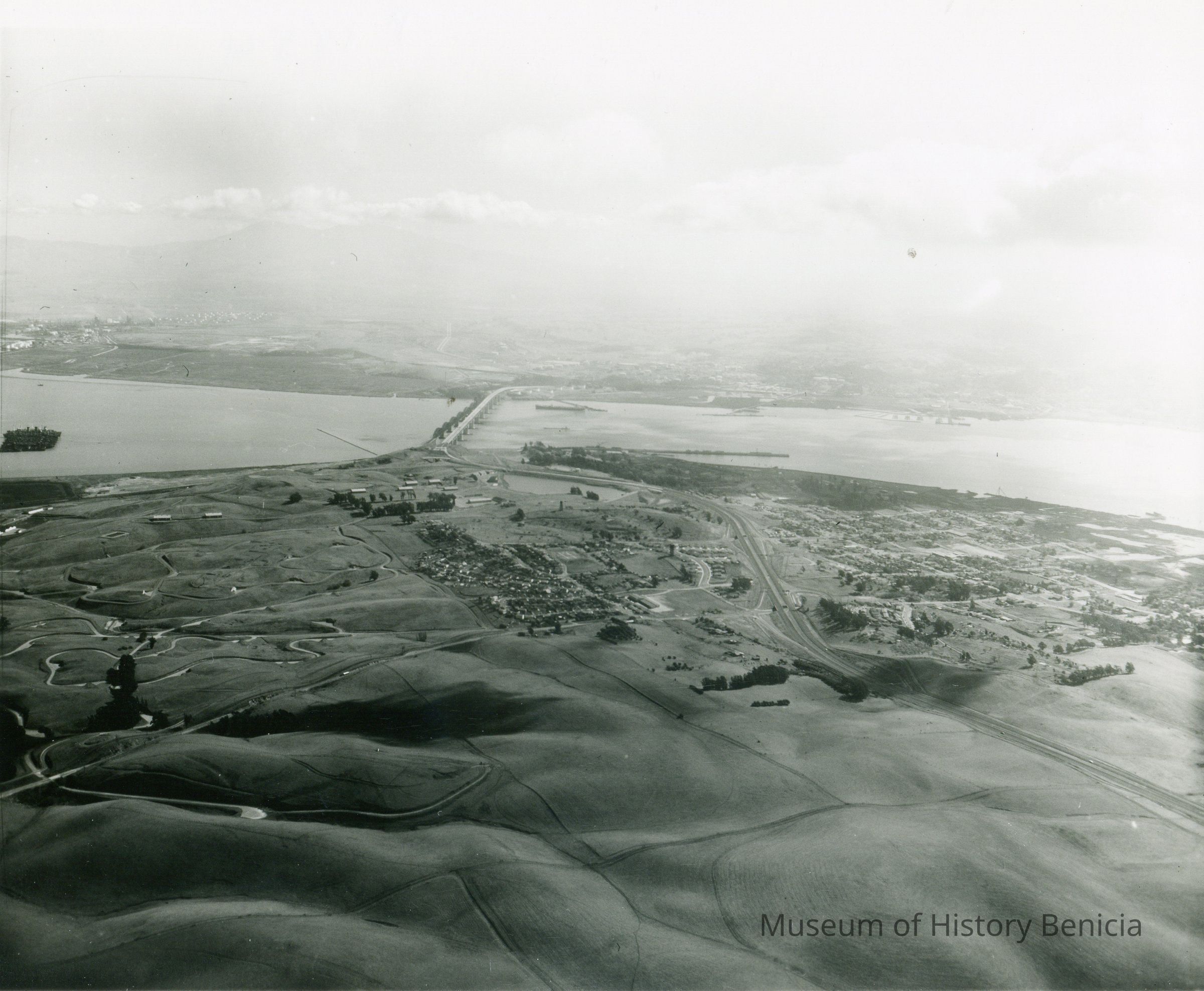 Black and white aerial view of Benicia Arsenal.