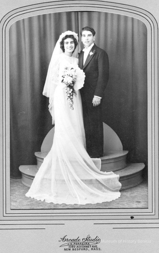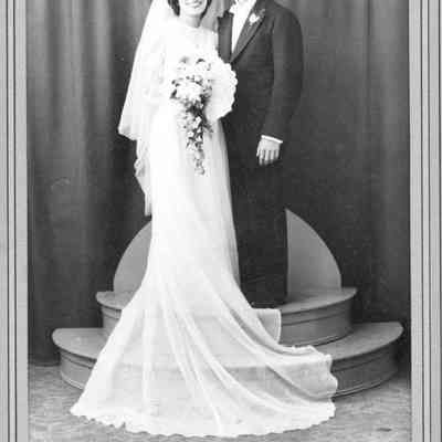Studio photo of a bride and groom.