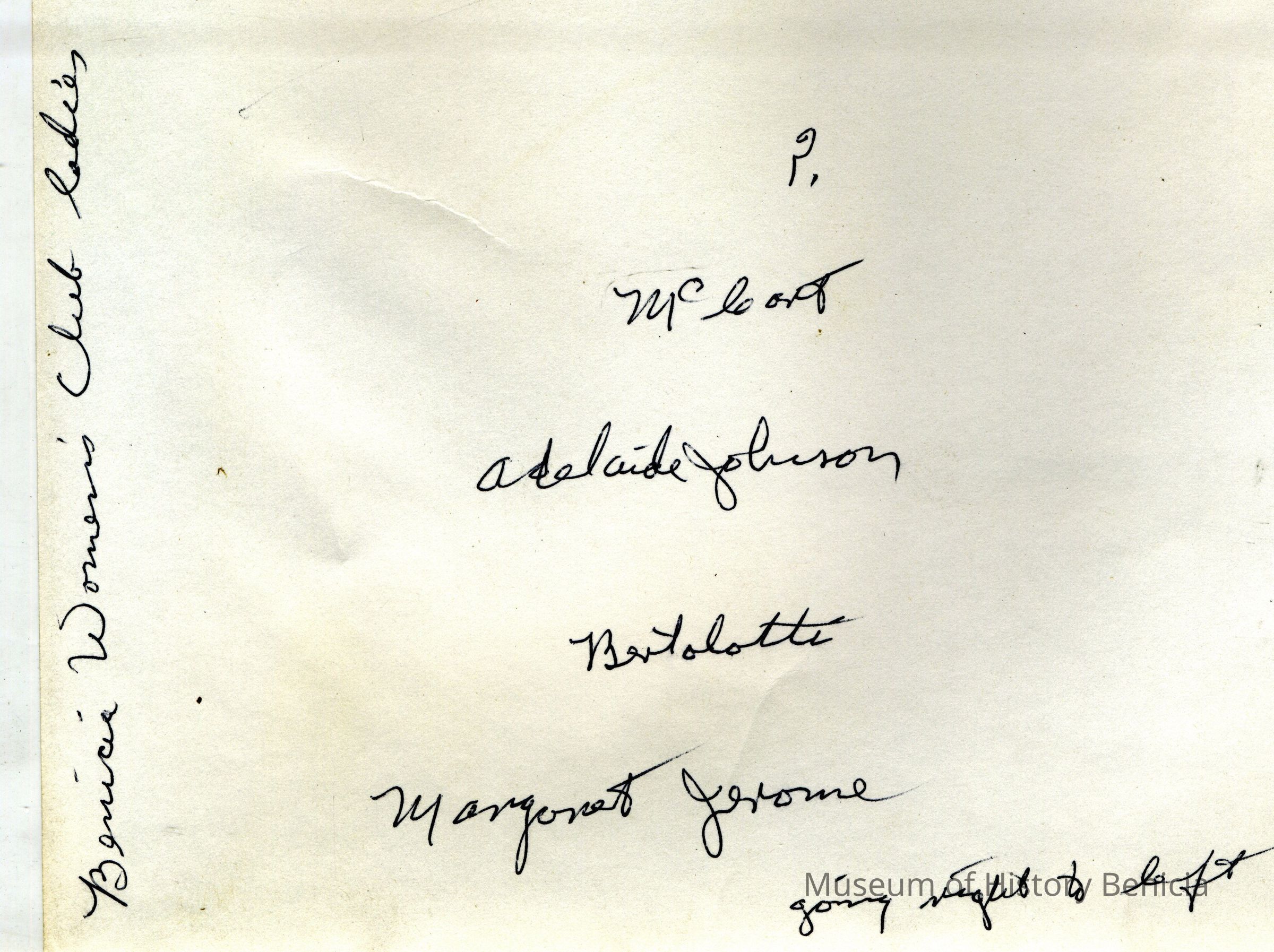 This is a photo of women from the Benicia Women's Club. They are identified as: