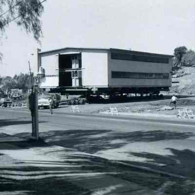 B/W Photograph - October 1968 - St. Catherine'ss Boys' Dormitory begins its journey to its new home on East K Street.
