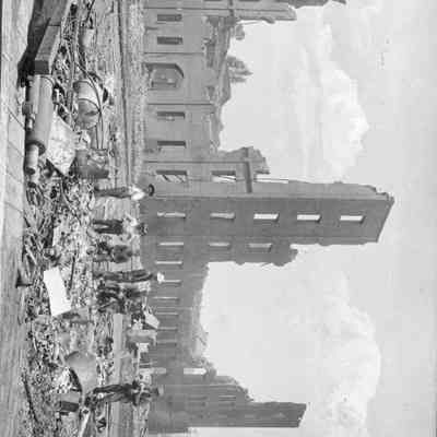 Photo of Kuhlman Salz tannery in ruins. The back of the photo has "Joe Diaz" written.