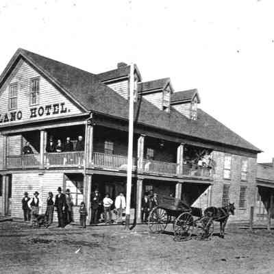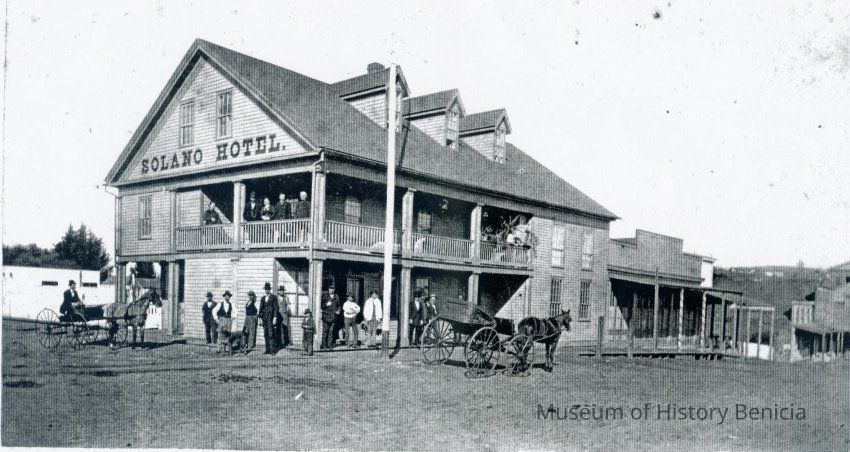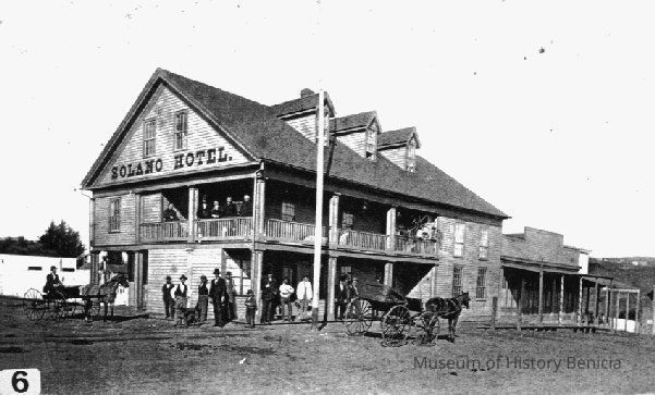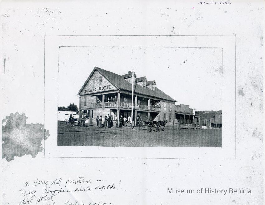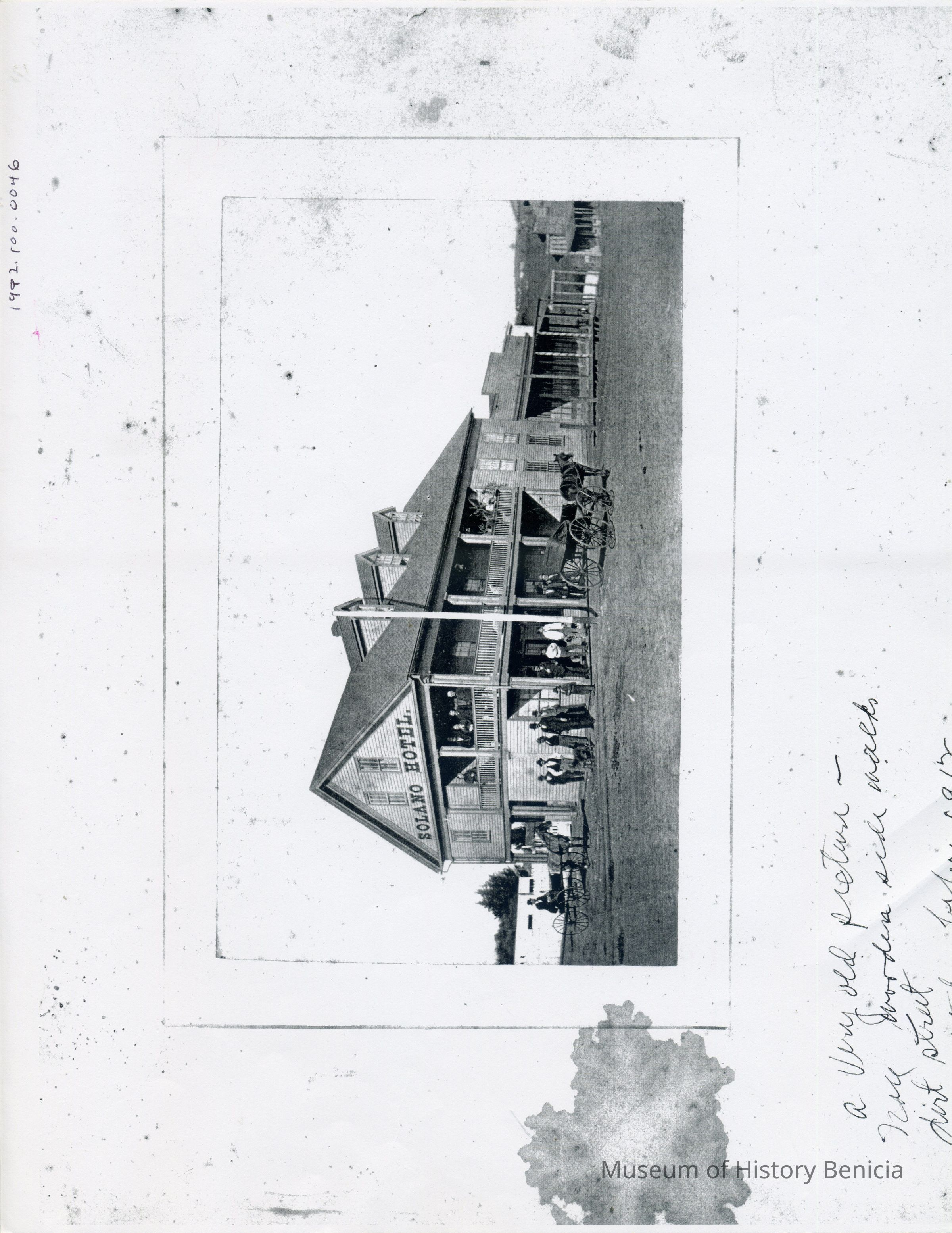The photo in our collection numbered 1992.100.0046 is the Solano Hotel but is not this image. It is a Zerox copy of the same image but not very clear. Not sure where the original image used for this copy is located. The photo we have on file looks like a very bad copy of this image. -- Bob Kvasnicka 02/19/2013.