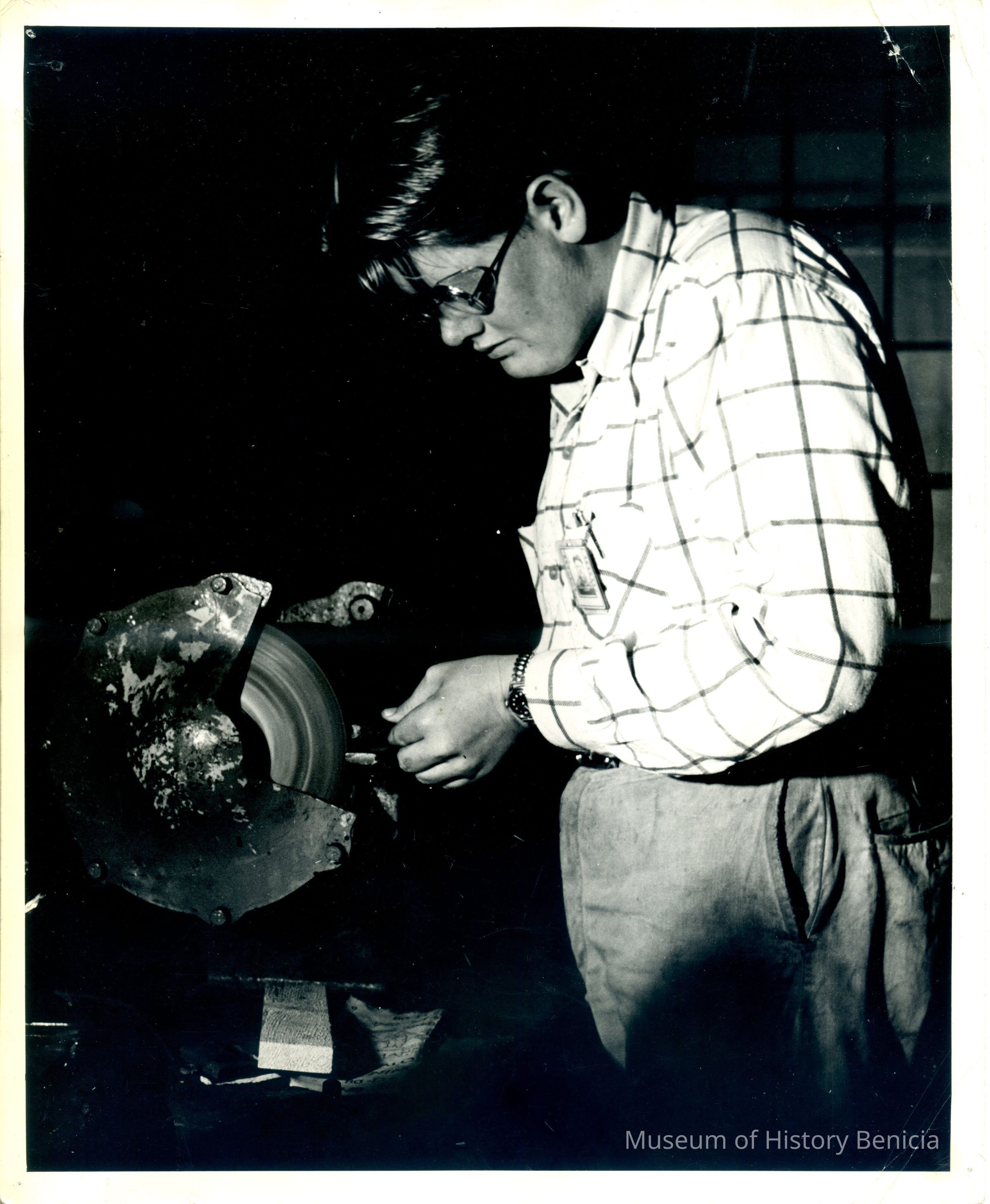 Photograph of Edwin Franklin, apprentice Machinist, 1951 Department of the Army -Ordnance Corps Apprenticeship Program