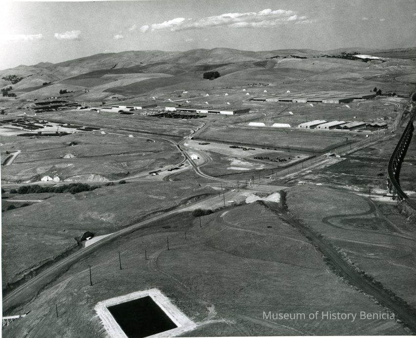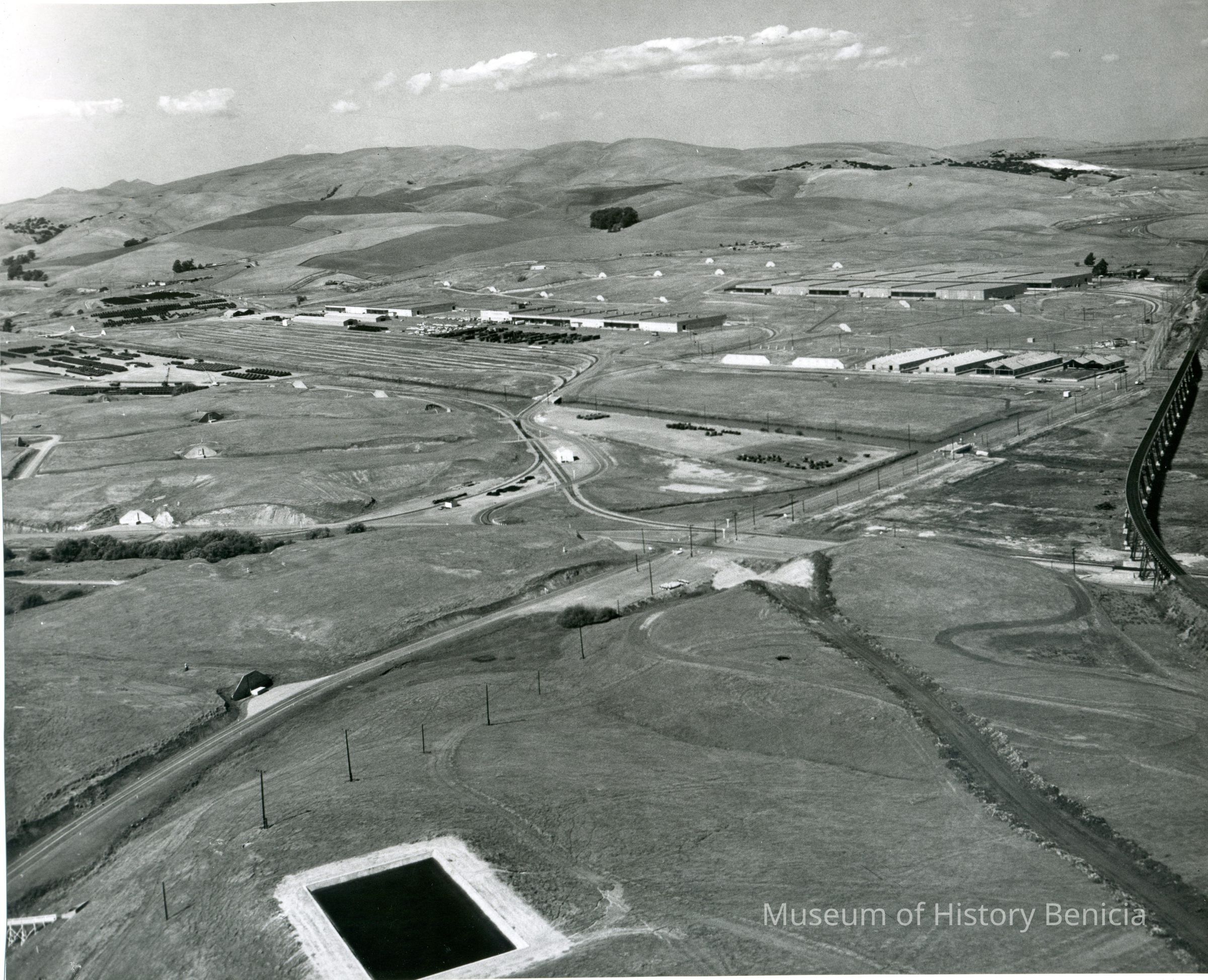 Photo from the Josephine Cowell research material. Shows an aerial view of Benicia Arsenal in 1961.