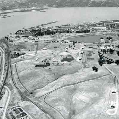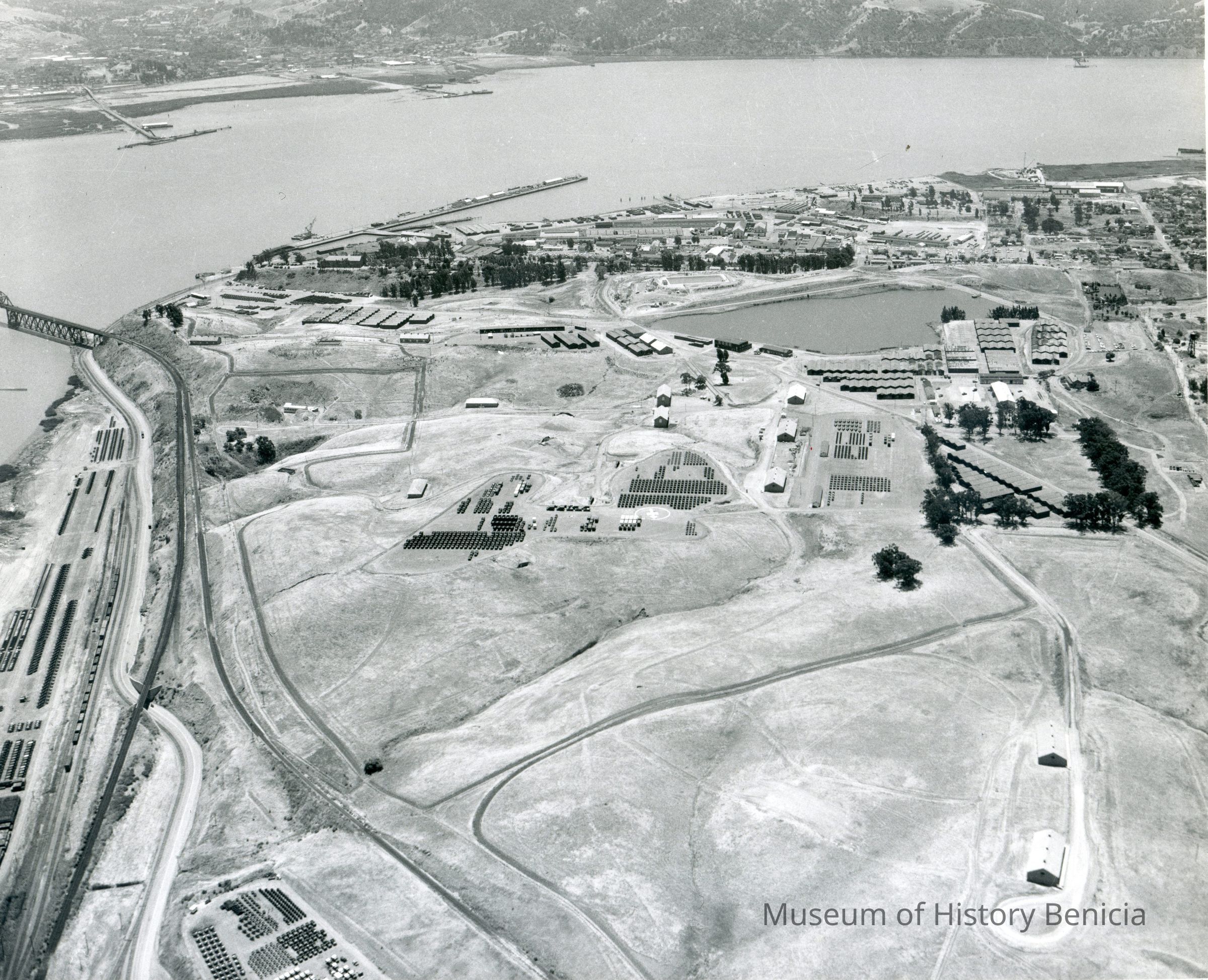 Photo from the Josephine Cowell research material. Shows an aerial view of Benicia Arsenal.