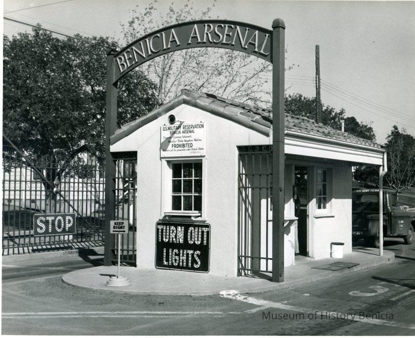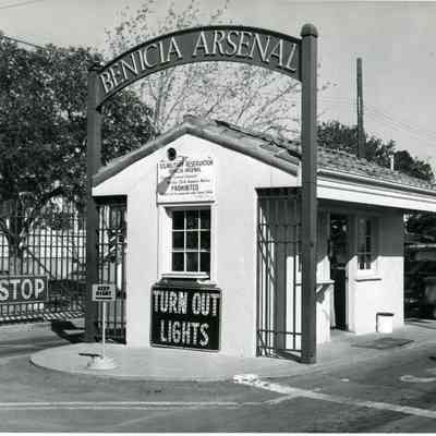 Photo from the Josephine Cowell research material. Shows the front/main gate to the Benicia Arsenal.